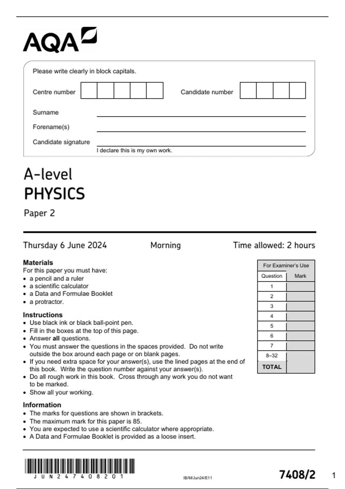 Thursday 6 June 2024 Morning Time allowed: 2 hours