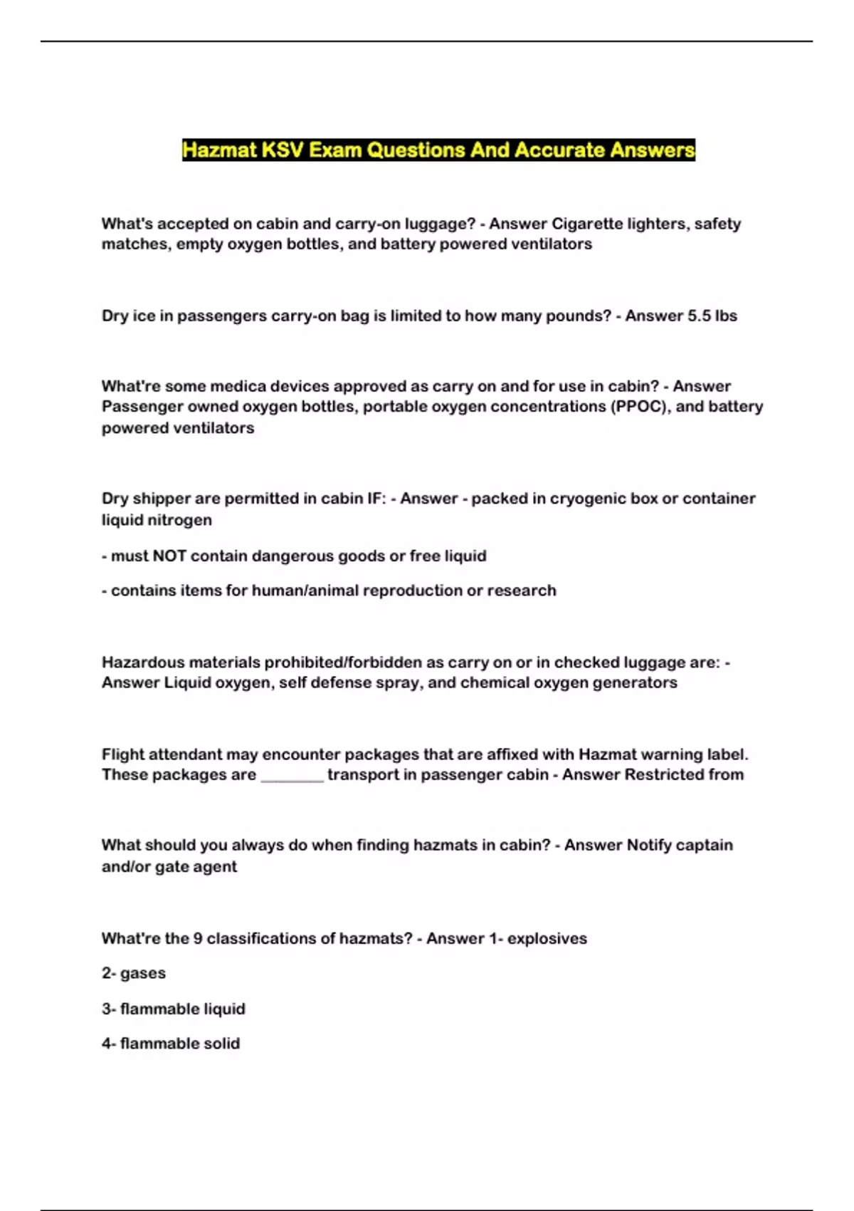 Hazmat KSV Exam Questions And Accurate Answers...