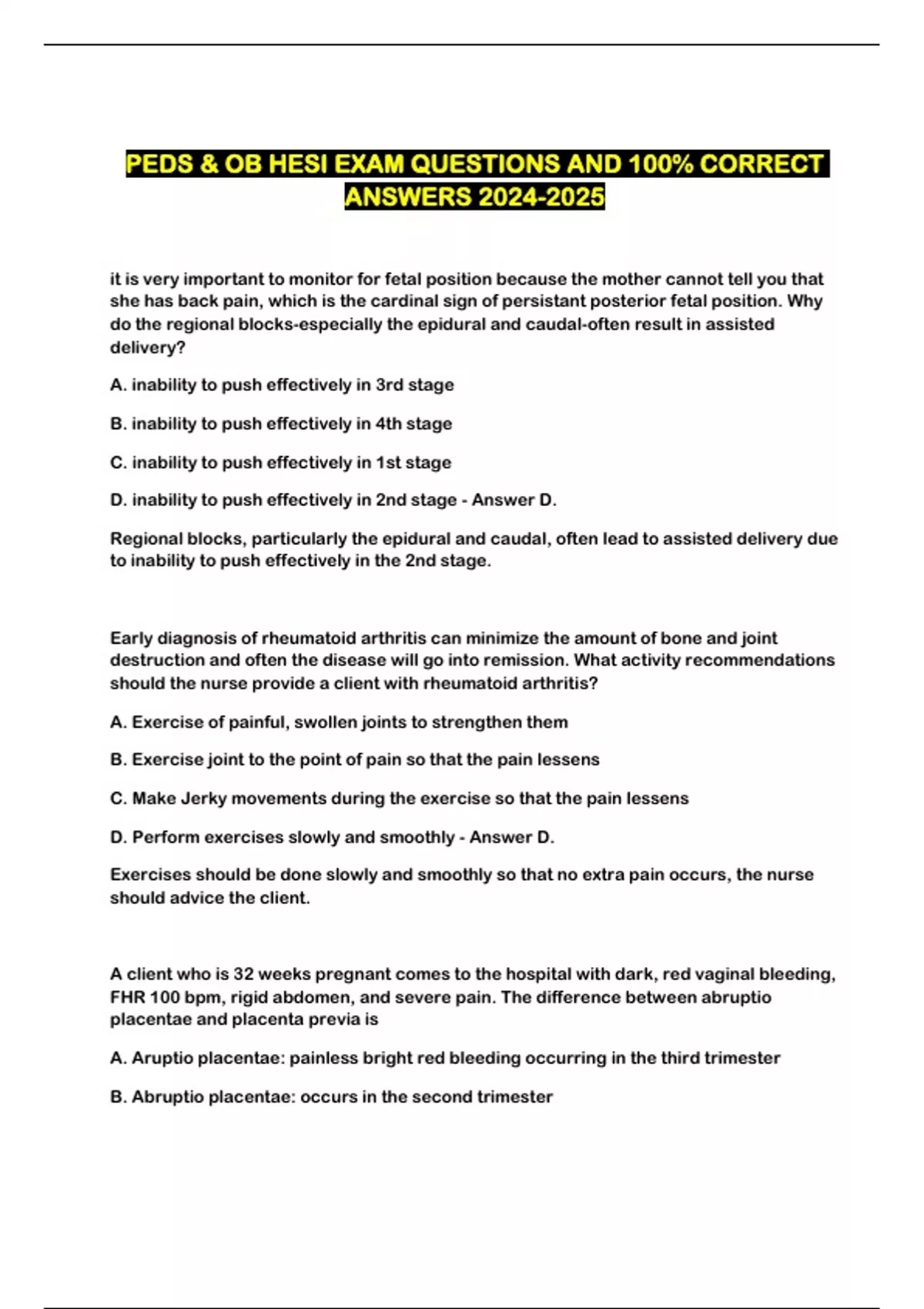 PEDS & OB HESI EXAM QUESTIONS AND 100% CORRECT