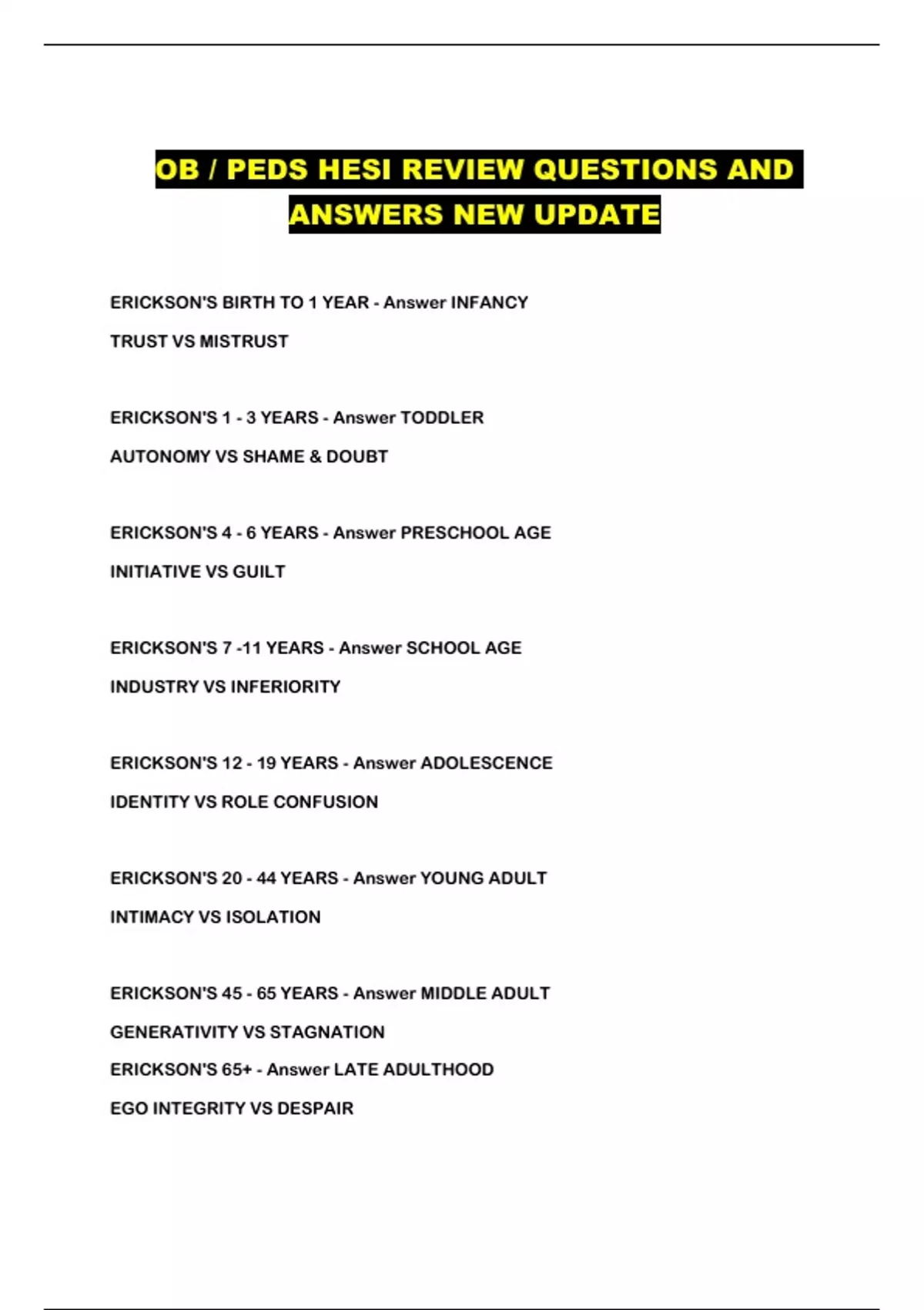 OB / PEDS HESI REVIEW QUESTIONS AND ANSWERS NEW UPDATE...