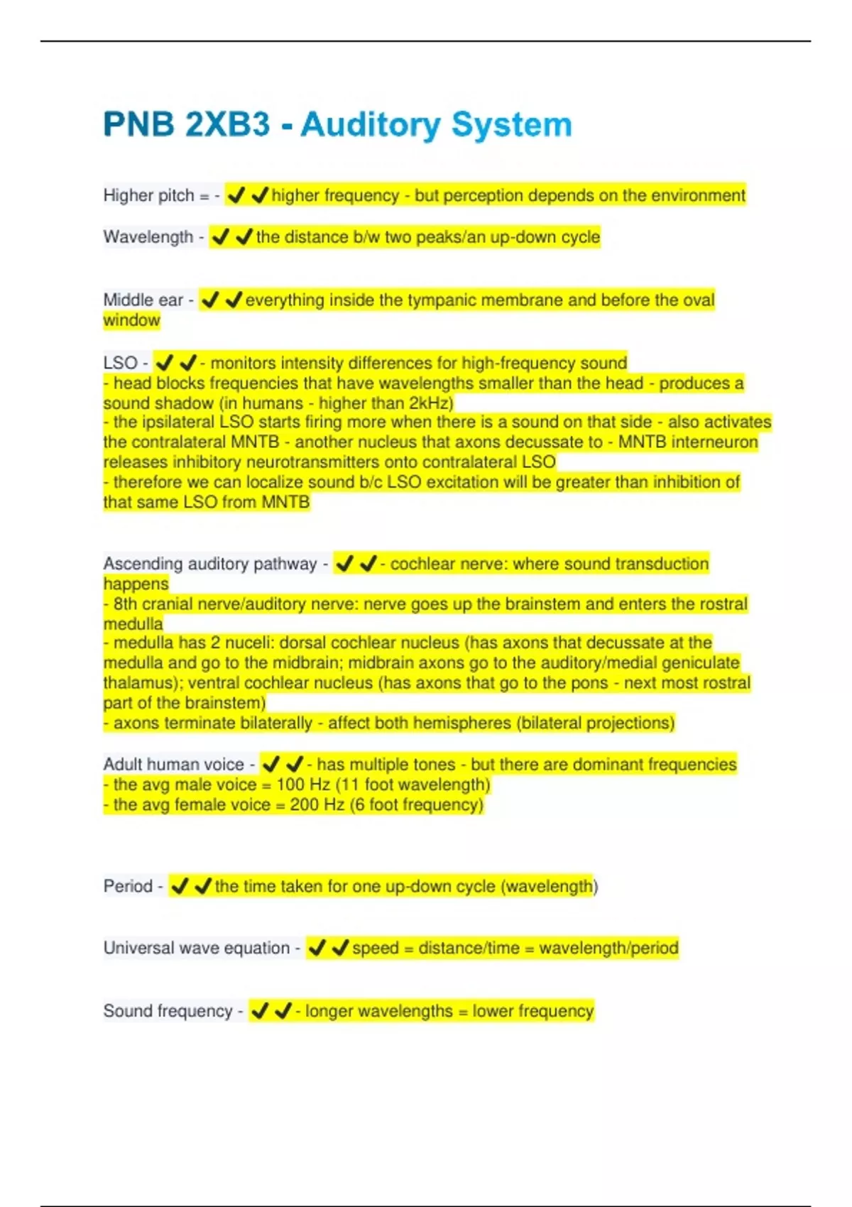 PNB 2XB3 - Auditory System Questions And Answers Already Graded A+