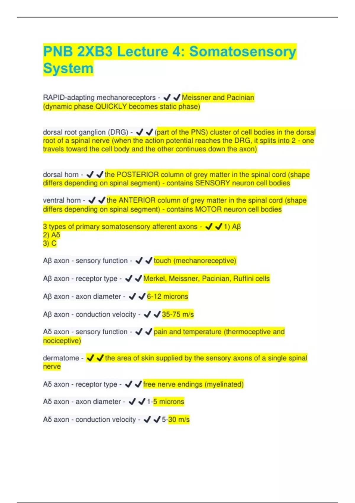 3 types of primary somatosensory afferent axons - ✔️✔️1) Aβ