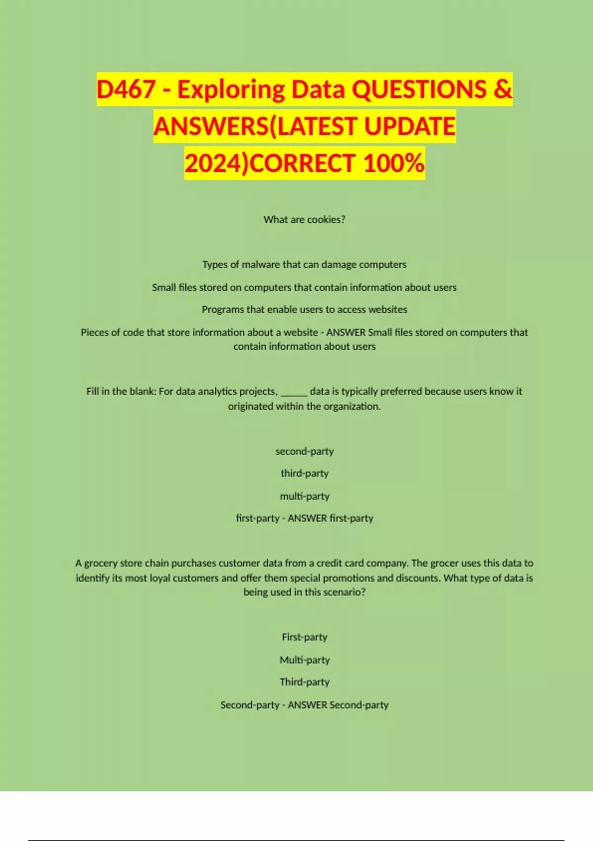 Second-party - ANSWER Second-party