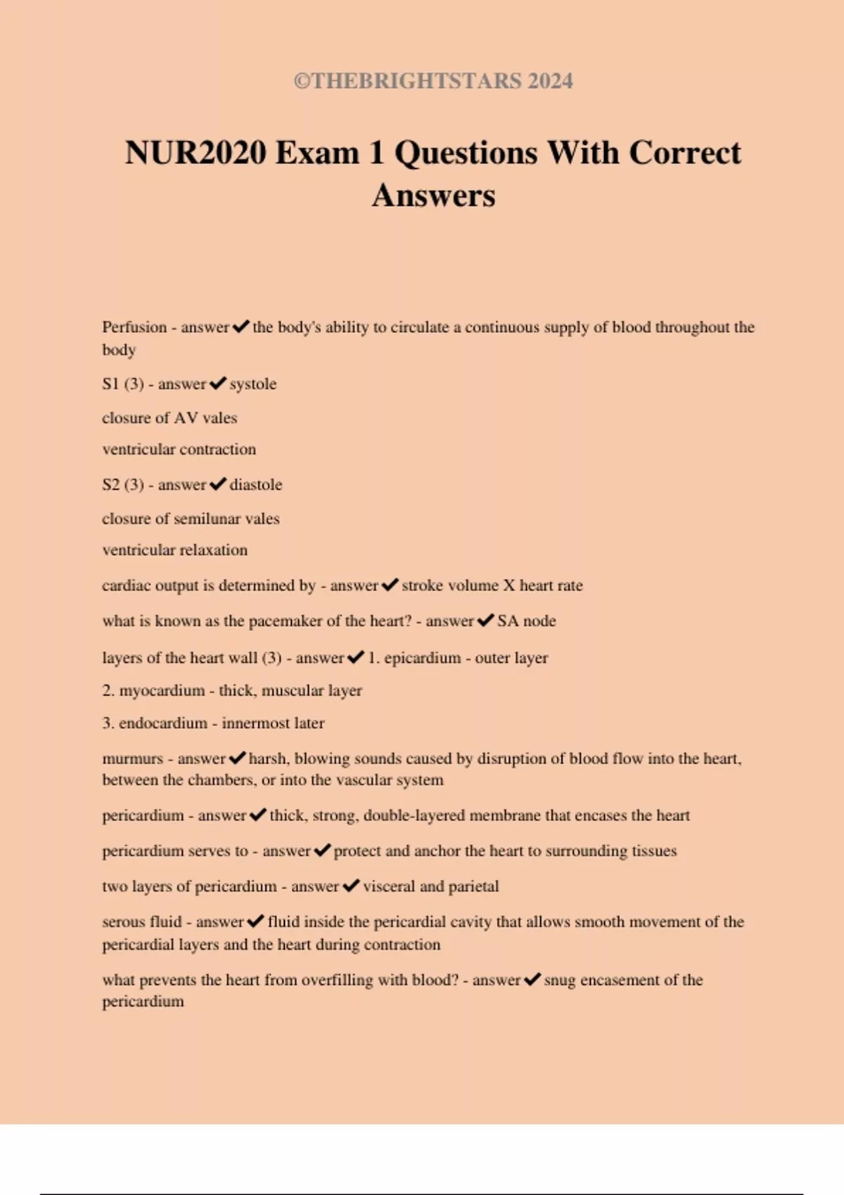 cardiac output is determined by - answer✔stroke volume X heart rate