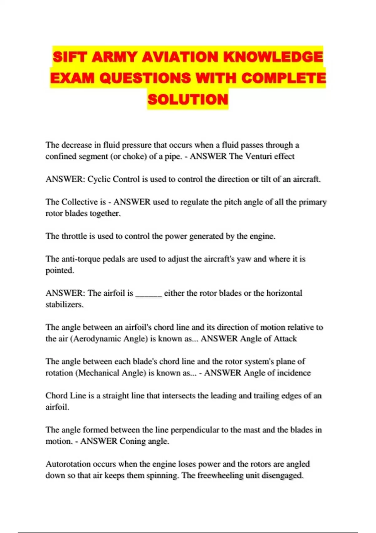 SIFT ARMY AVIATION KNOWLEDGE
