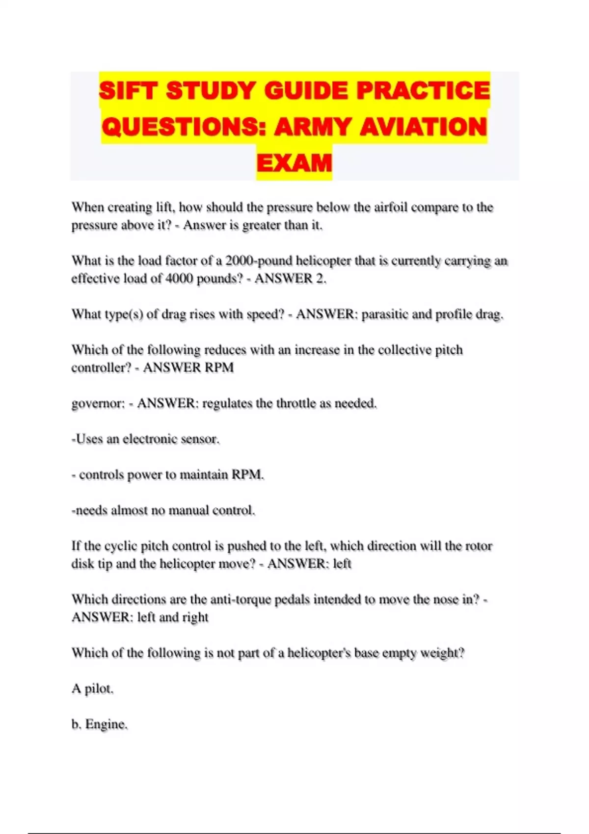 QUESTIONS: ARMY AVIATION