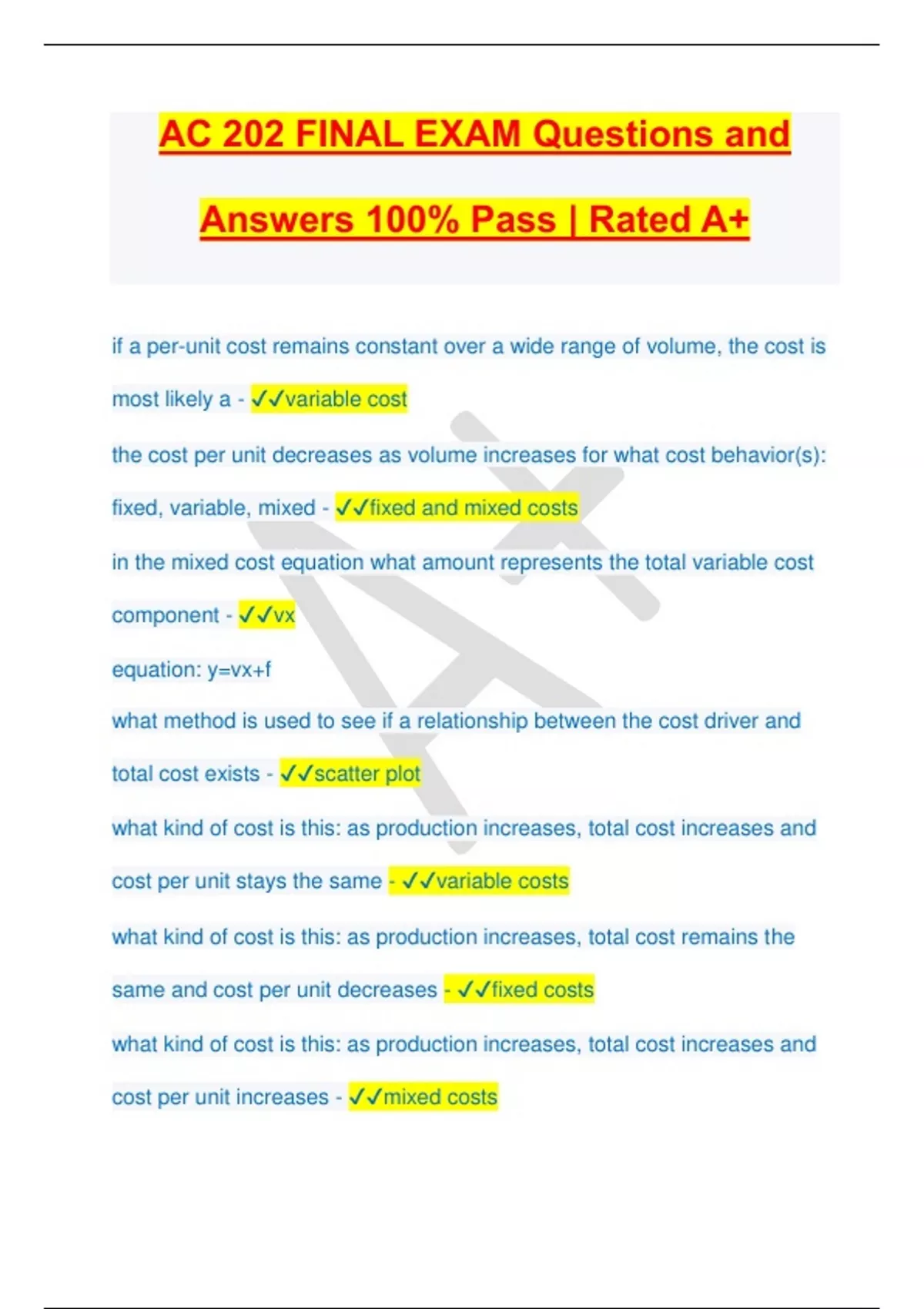 cost per unit increases - ✔✔mixed costs