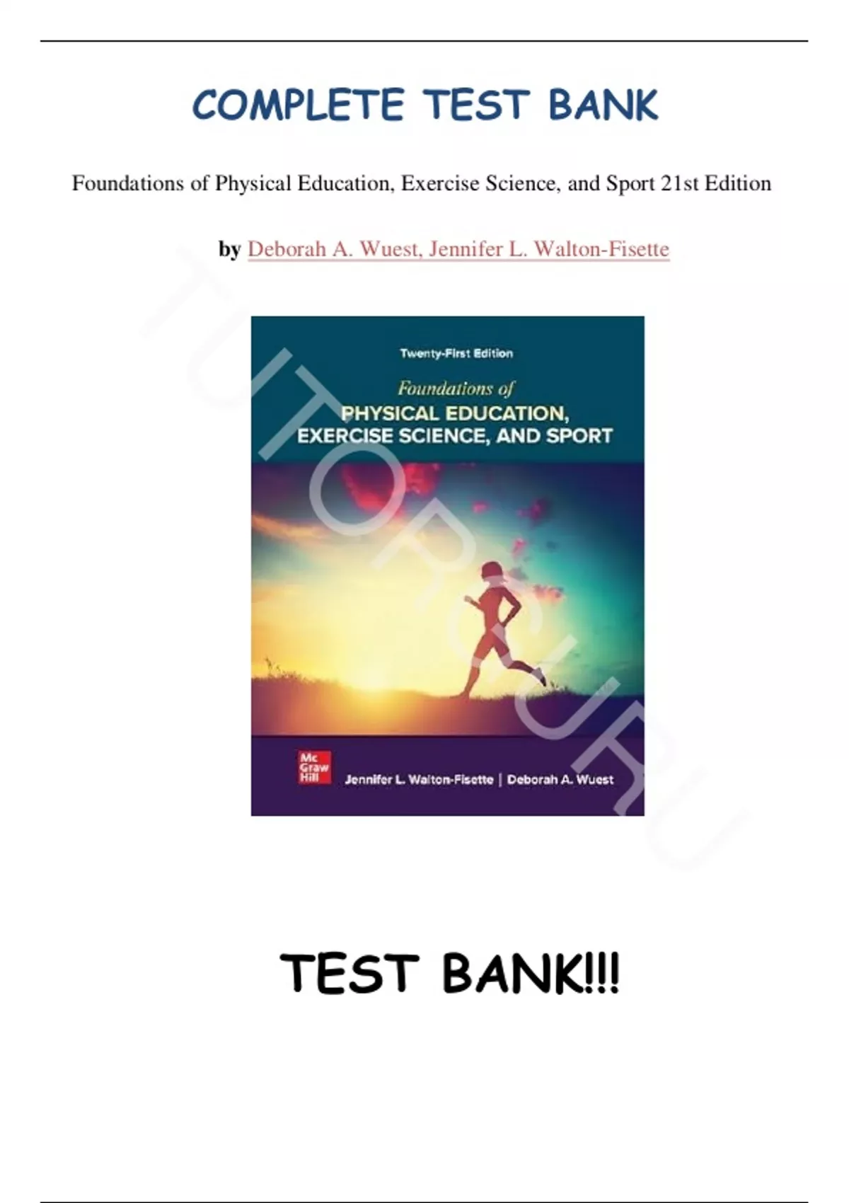 Test Bank - for Foundations of Physical Education, Exercise Science, and Sport 21st Edition by Deborah A. Wuest, Jennifer L. Walton-Fisette, All Chapters | Complete Guide A+