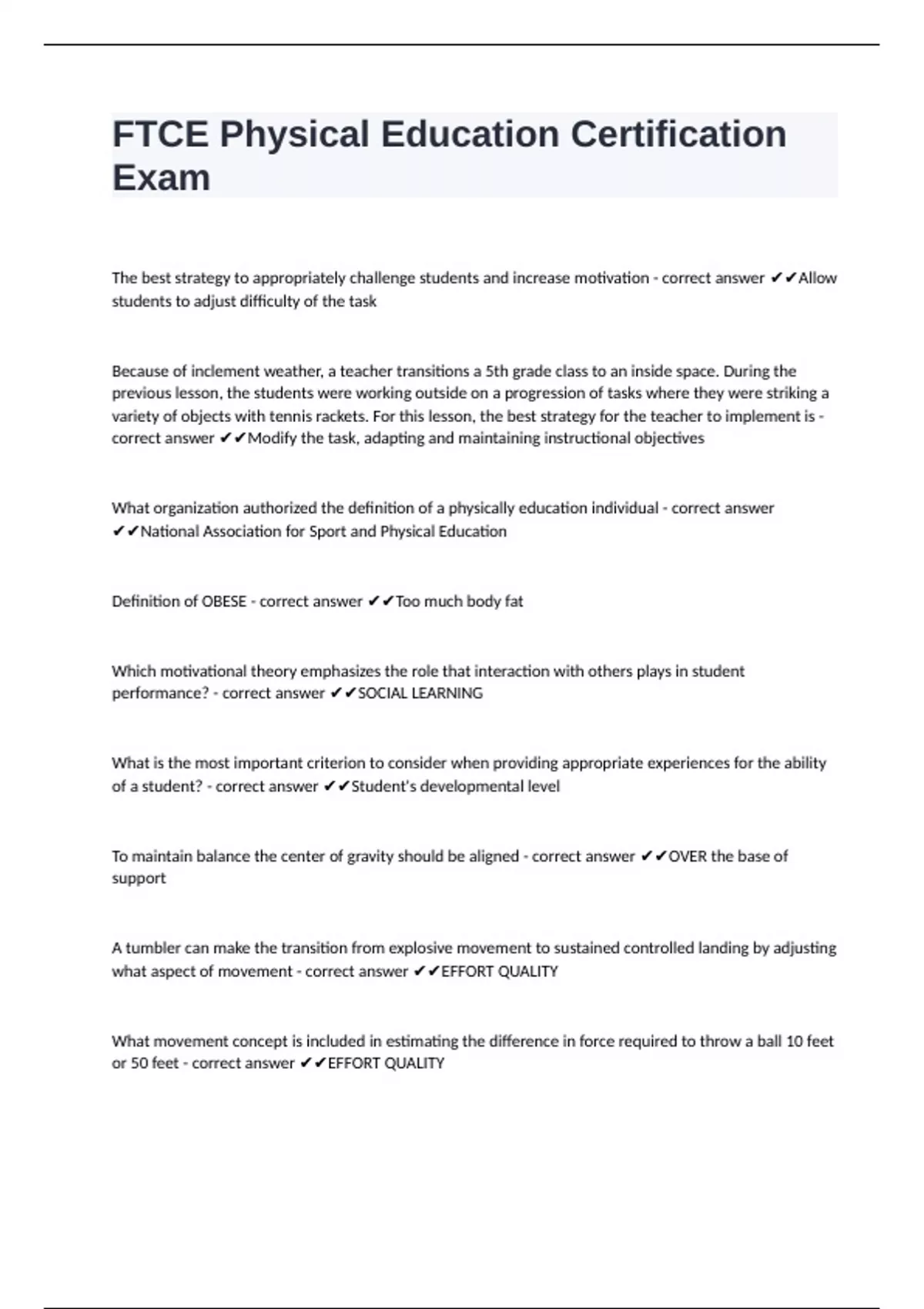 or 50 feet - correct answer ✔✔EFFORT QUALITY