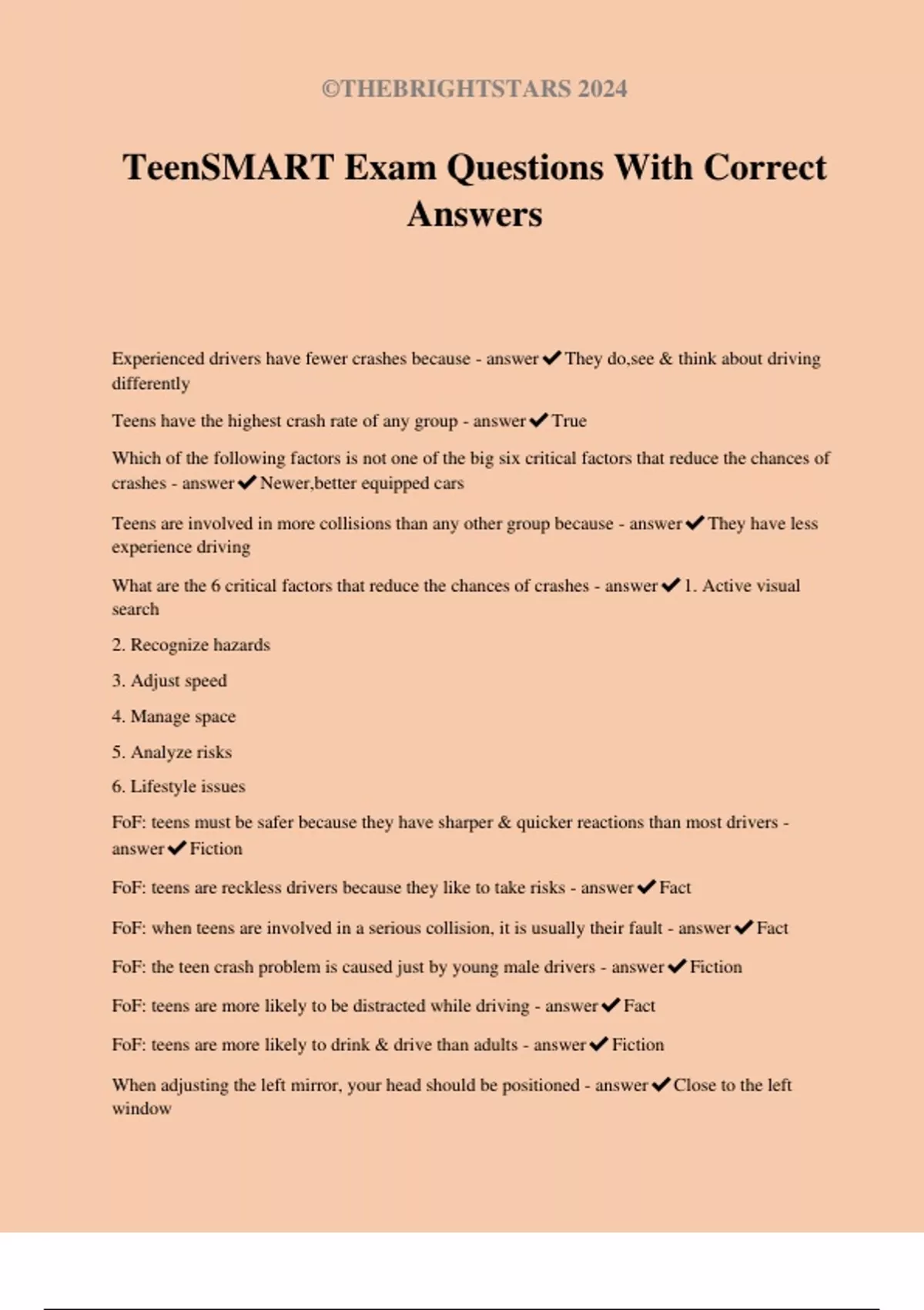 TeenSMART Exam Questions With Correct