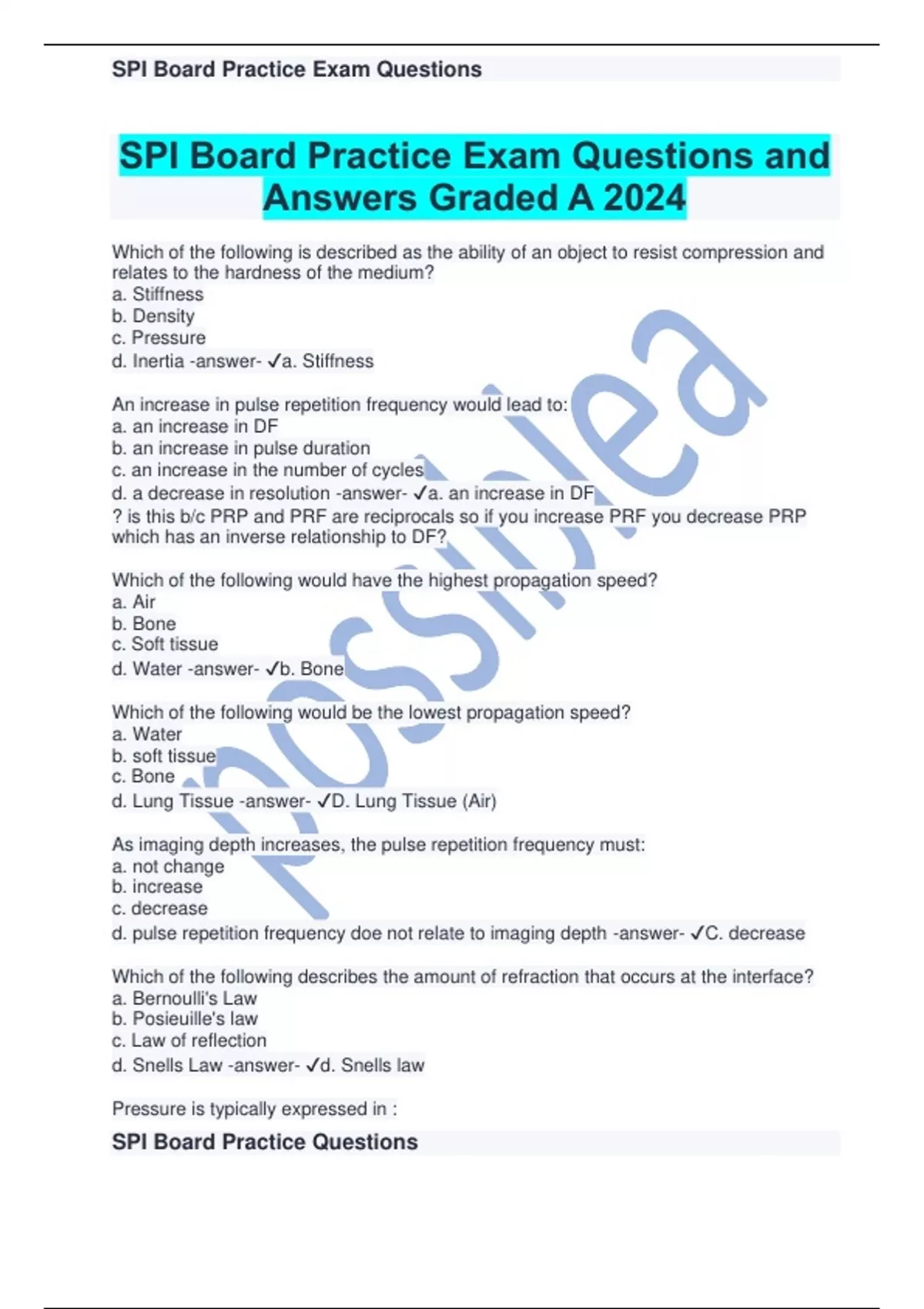 SPI Board Practice Exam Questions and Answers Graded A 2024