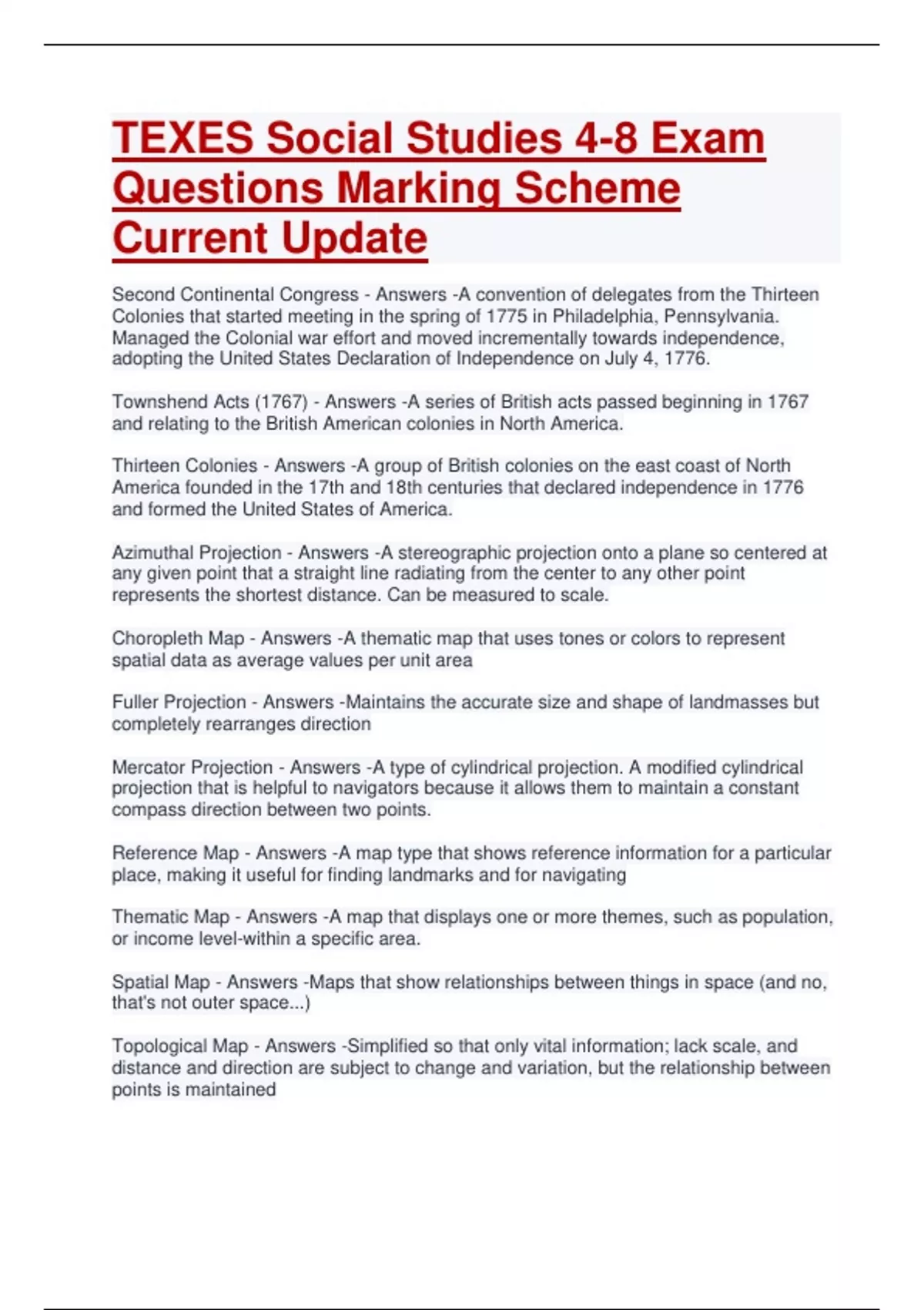 Fuller Projection - Answers -Maintains the accurate size and shape of landmasses but