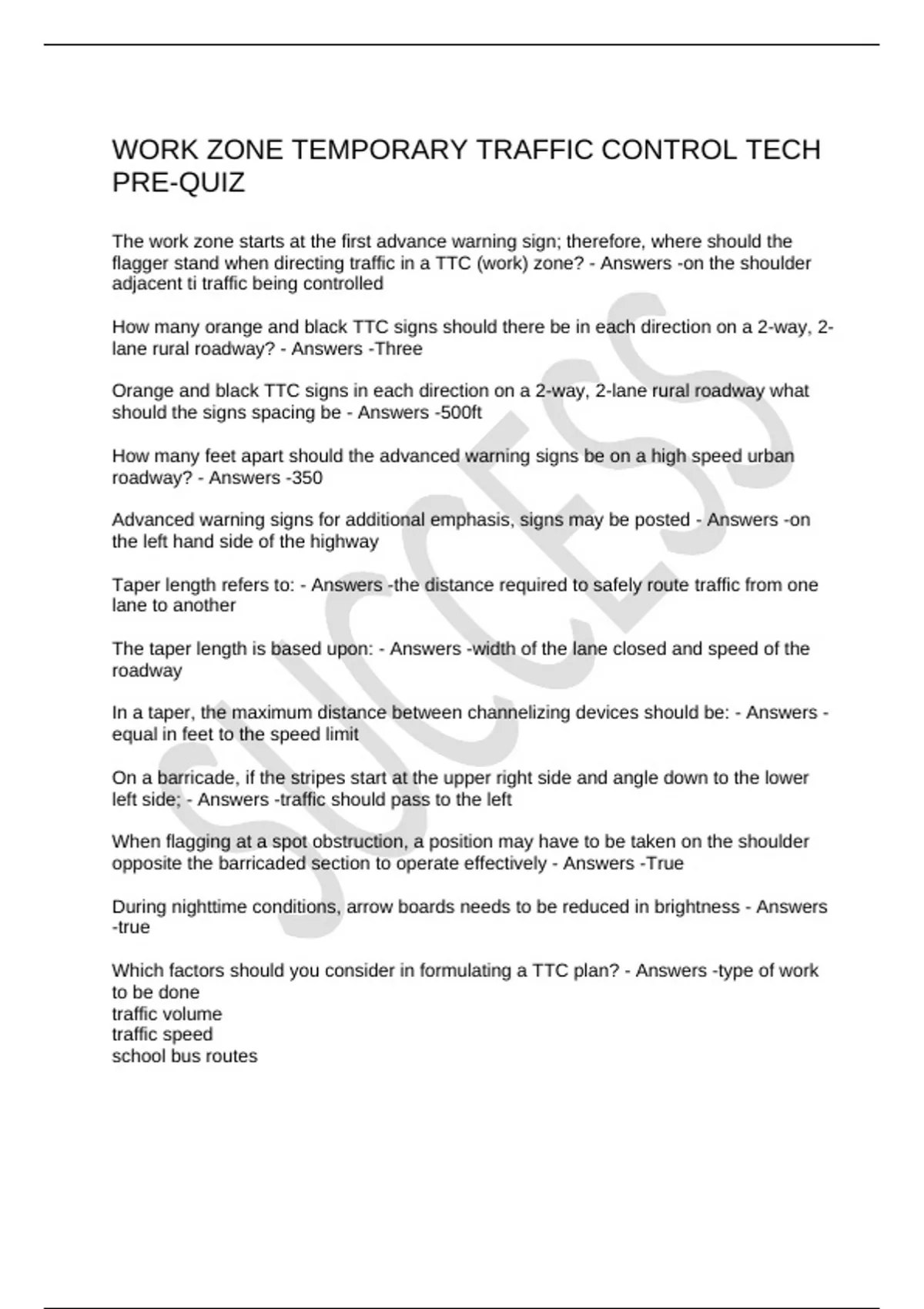 - Answers -Manual of uniform traffic control devices