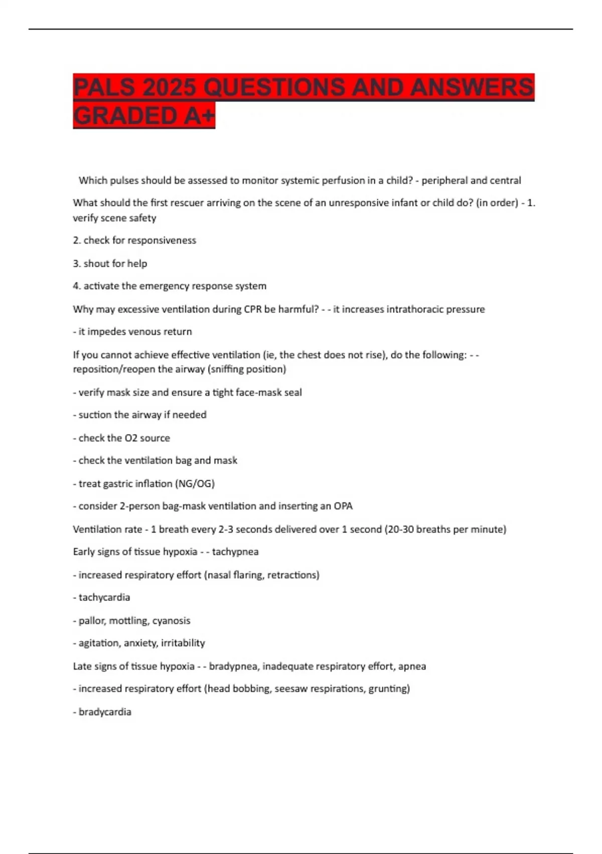Ventilation rate - 1 breath every 2-3 seconds delivered over 1 second (20-30 breaths per minute)