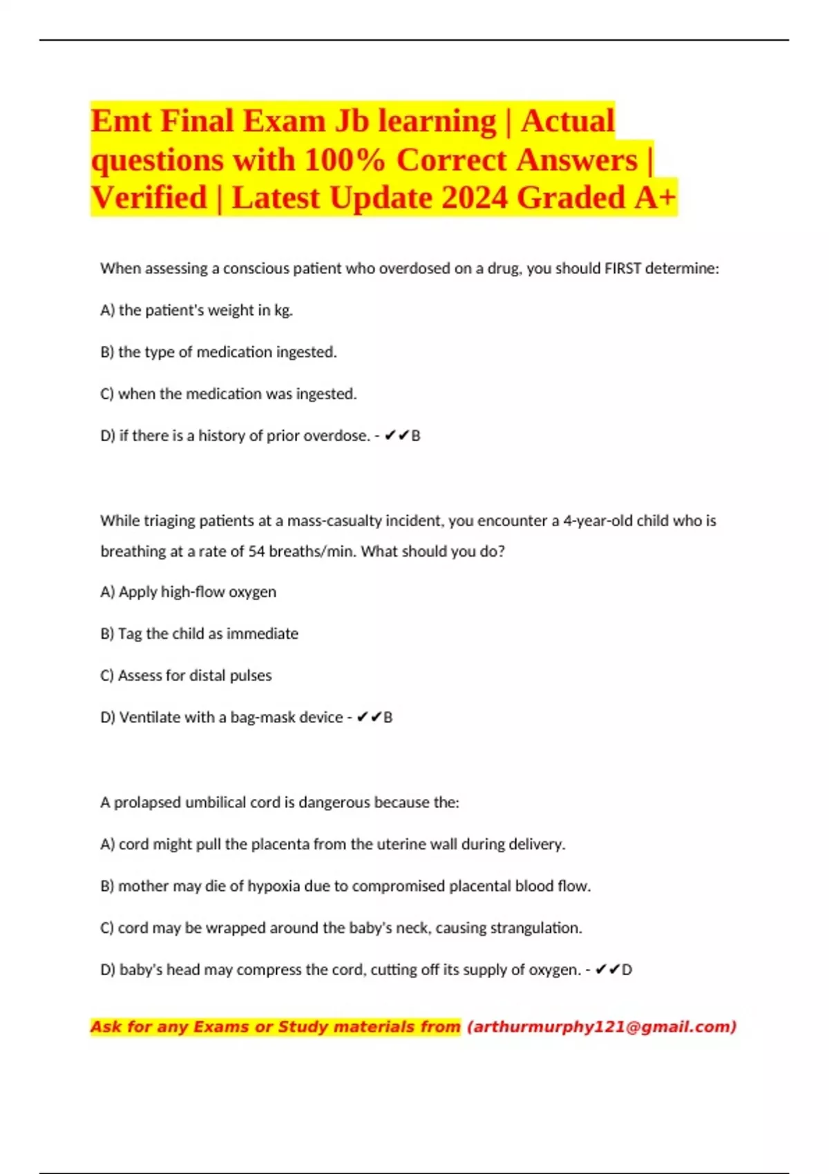Emt Final Exam Jb learning | Actual