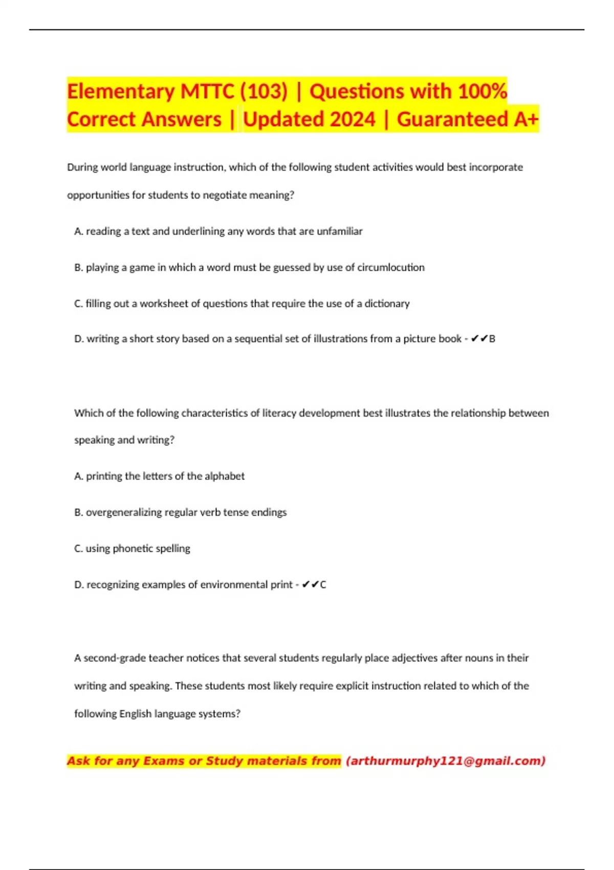 D. writing a short story based on a sequential set of illustrations from a picture book - ✔✔B