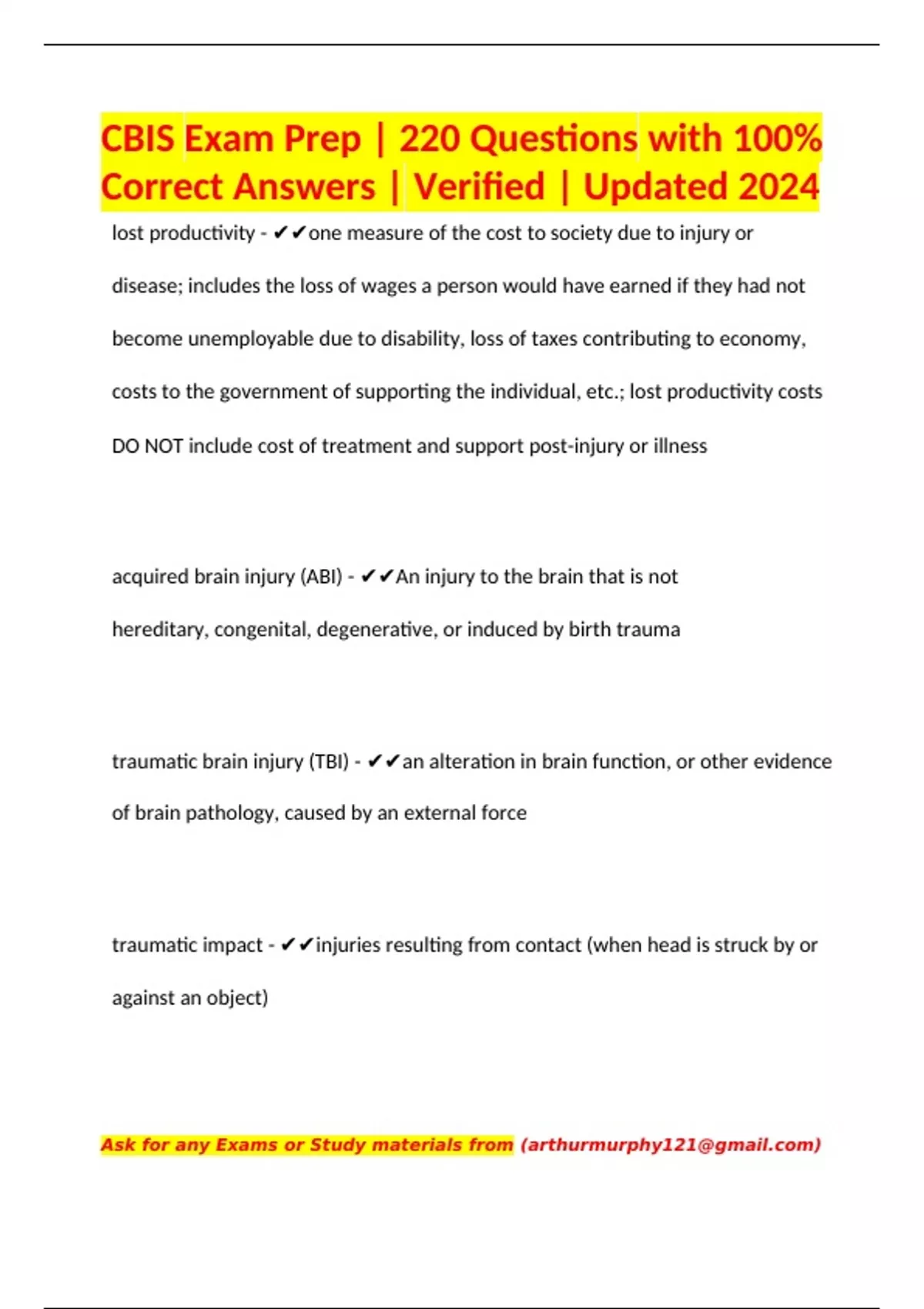 CBIS Exam Prep | 220 Questions with 100% Correct Answers | Verified | Updated 2024