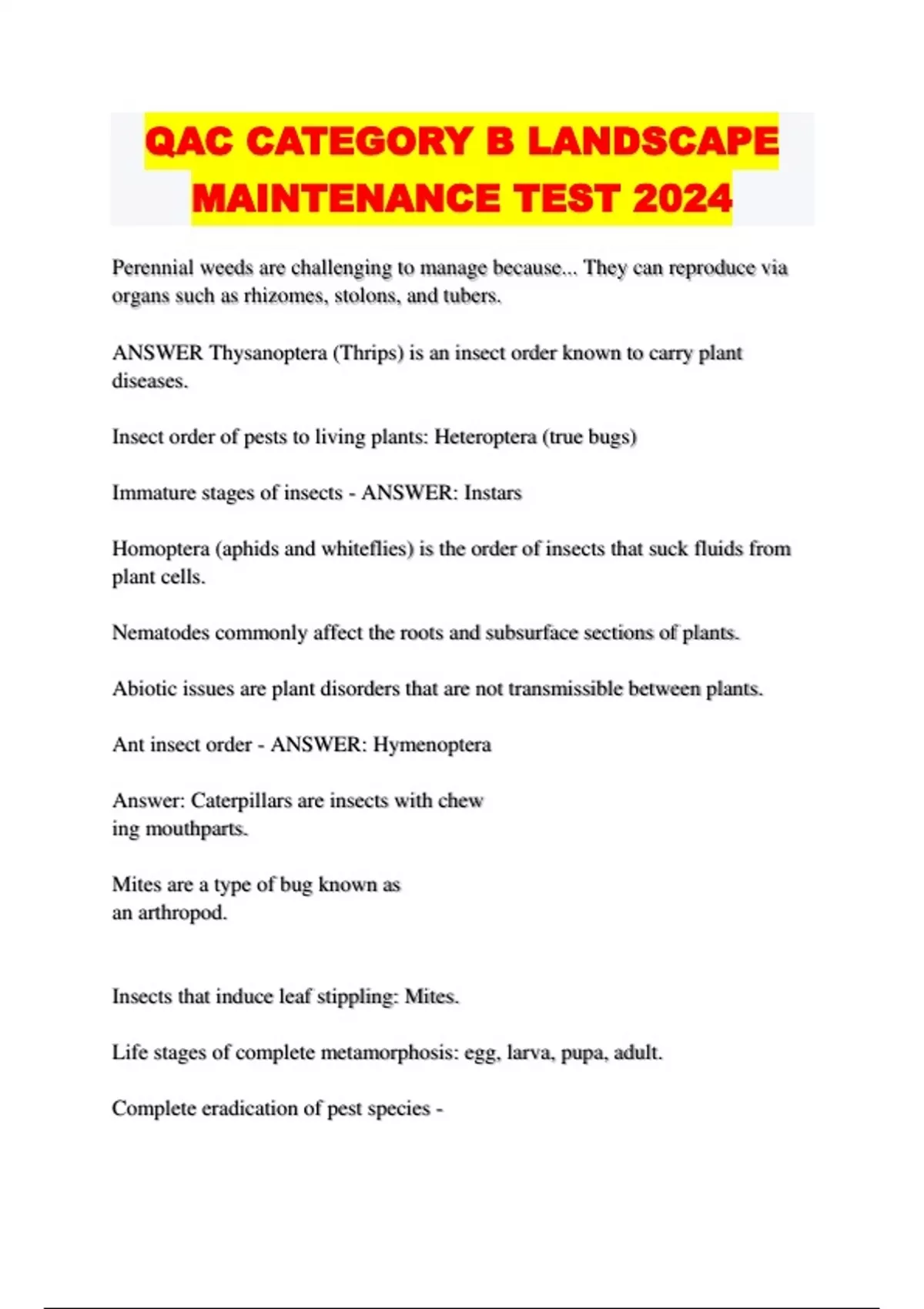 , Pests that often inflict damage - ANSWER Key Pests.