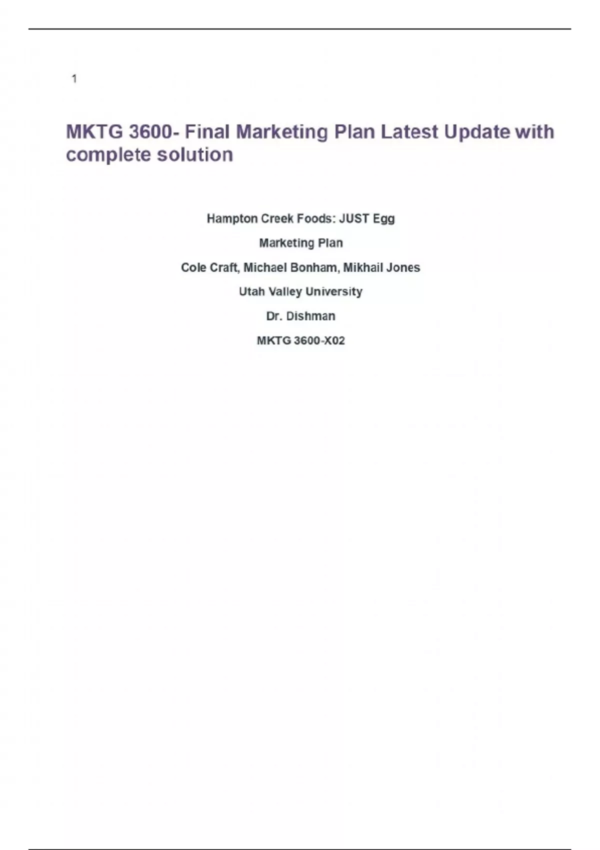 MKTG 3600- Final Marketing Plan Latest Update with complete solution MKTG 3600- Final Marketing Plan Latest Update with complete solution