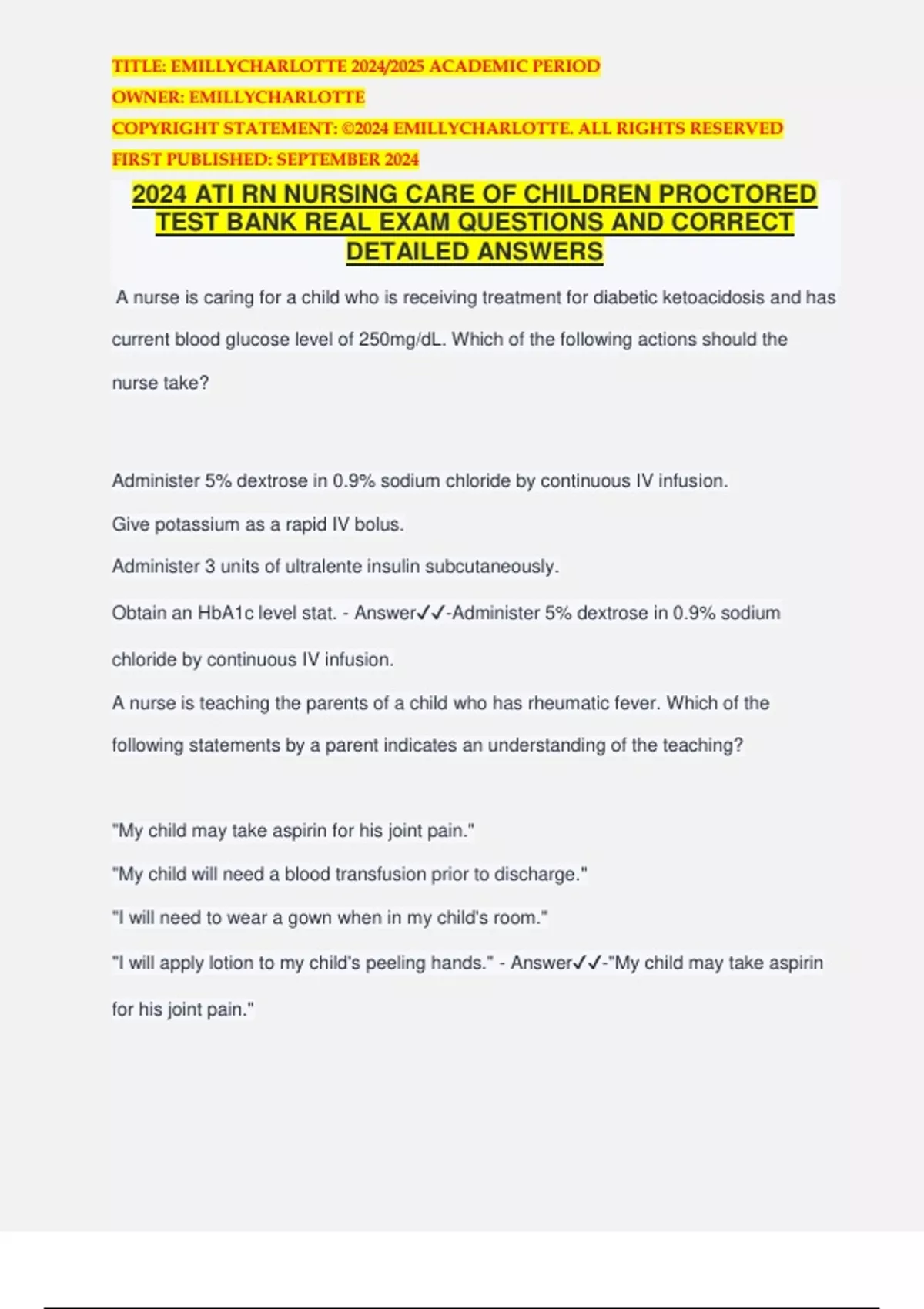 2024 ATI RN NURSING CARE OF CHILDREN PROCTORED