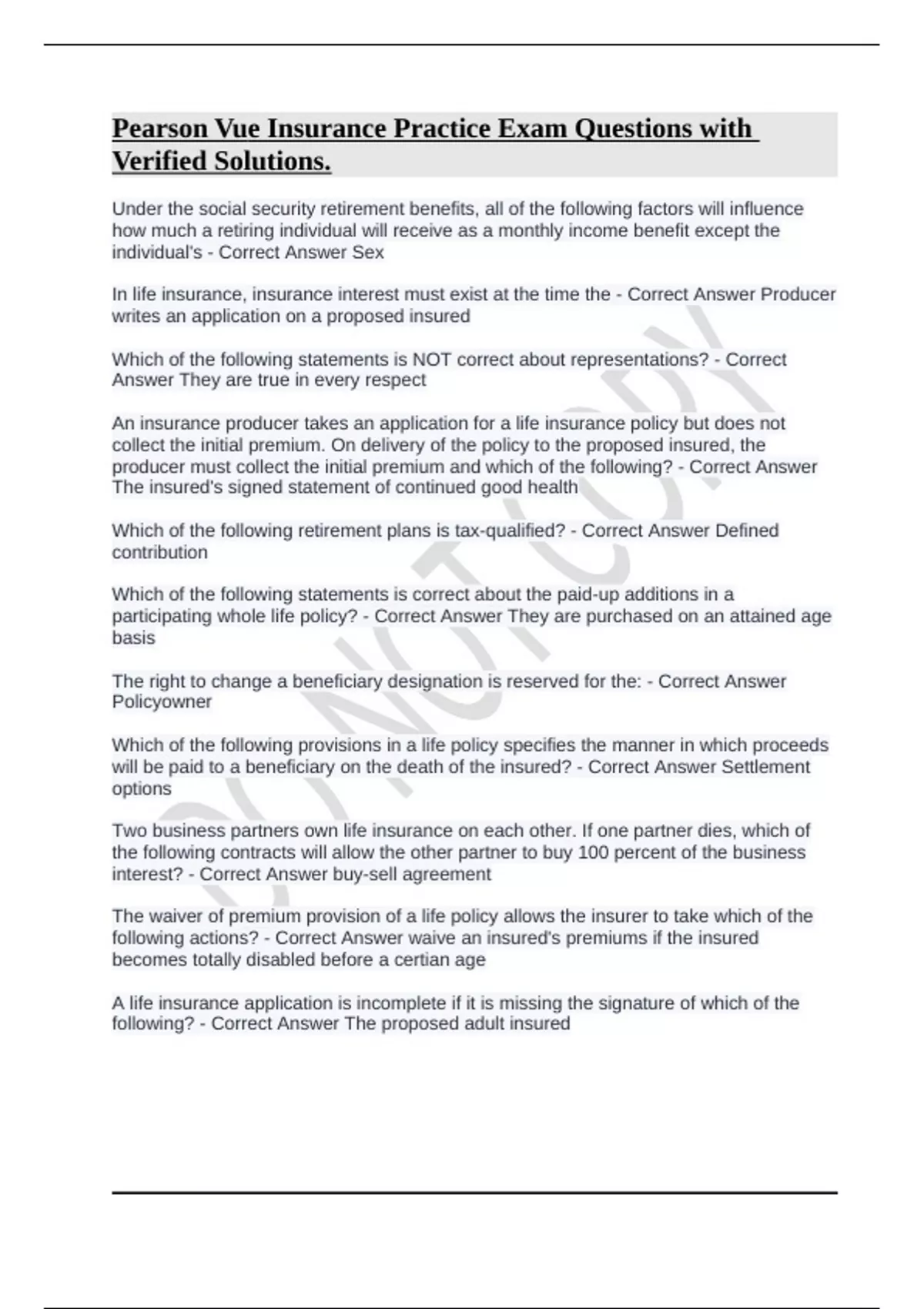 Pearson Vue Insurance Practice Exam Questions with Verified Solutions.Pearson Vue Insurance Practice Exam Questions with Verified Solutions.Pearson Vue Insurance Practice Exam Questions with Verified Solutions.