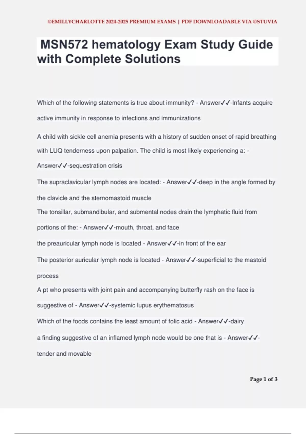 MSN572 hematology Exam Study Guide with Complete Solutions
