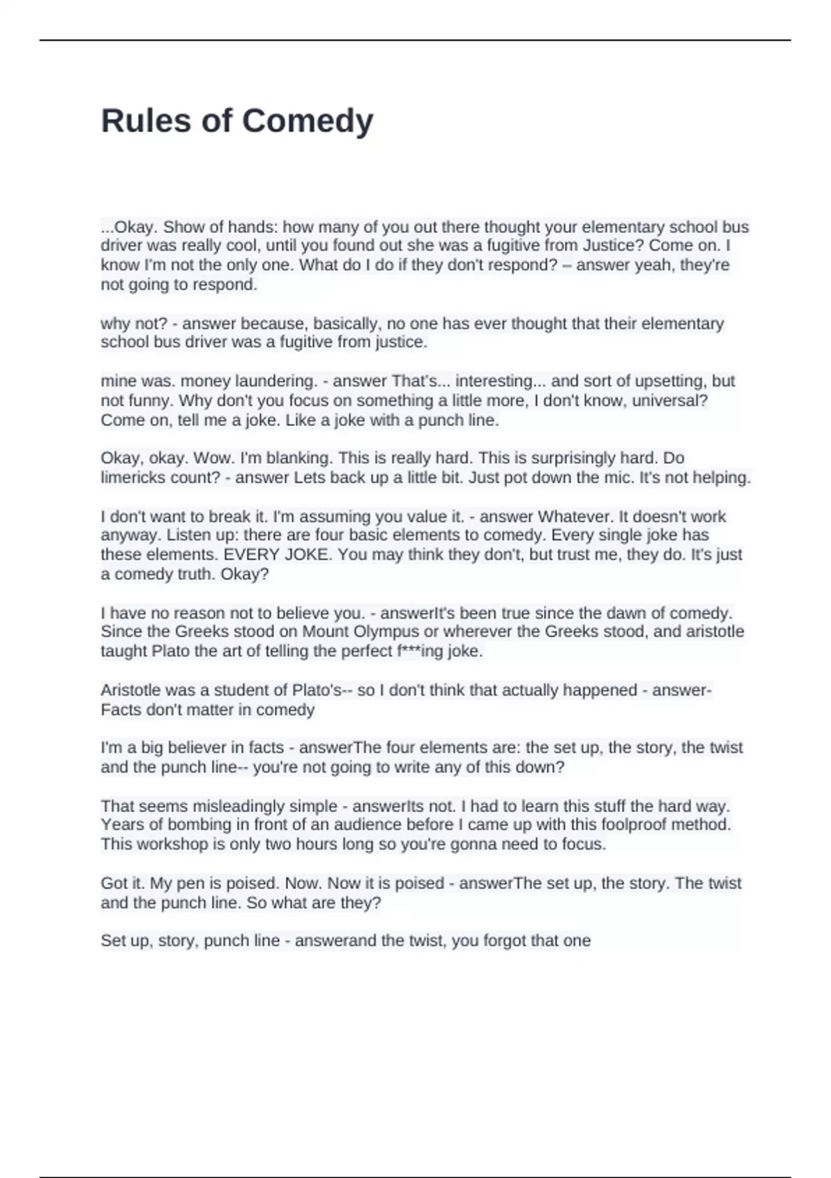 Rules of Comedy Questions and Answers Fully Solved