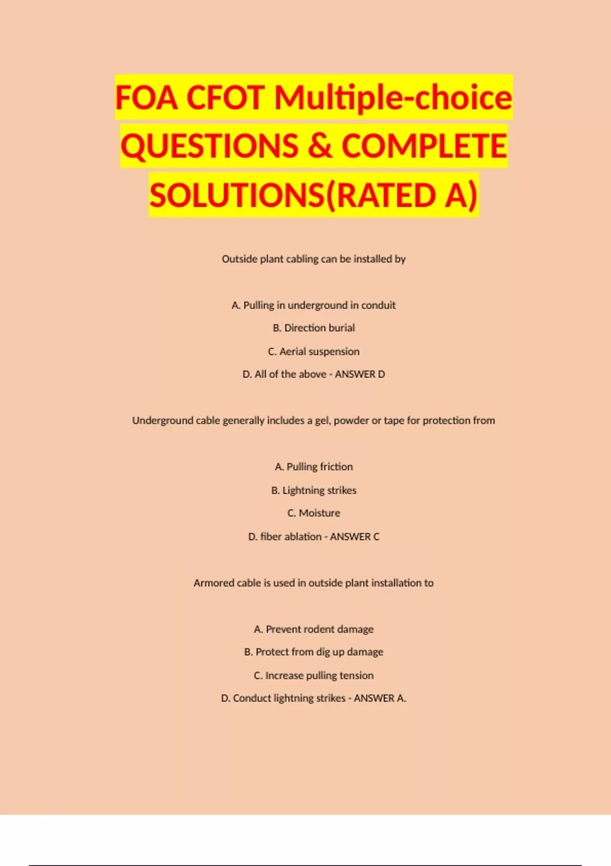FOA CFOT Multiple-choice QUESTIONS & COMPLETE SOLUTIONS(RATED A)