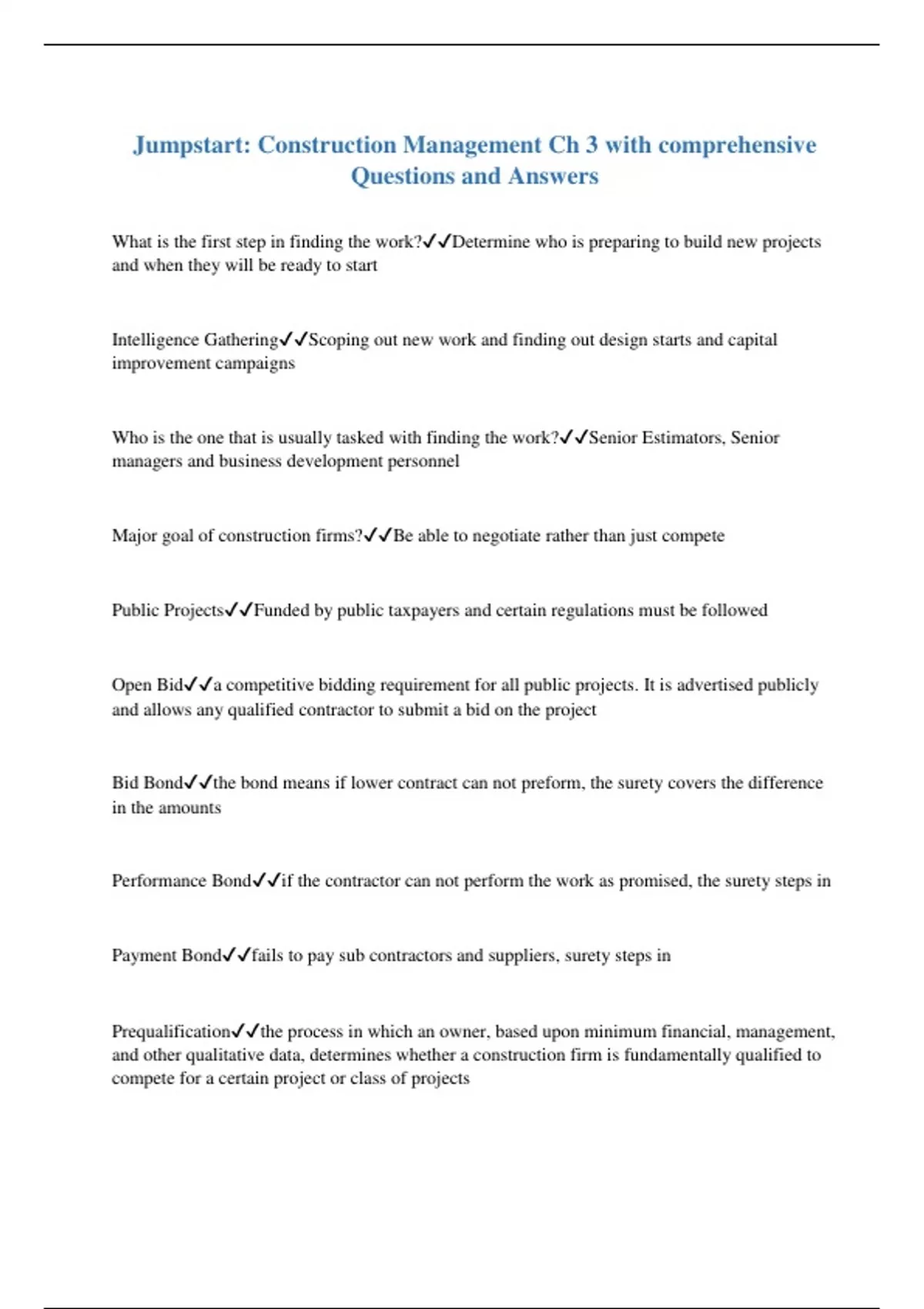 Prequalification✔️✔️the process in which an owner, based upon minimum financial, management,