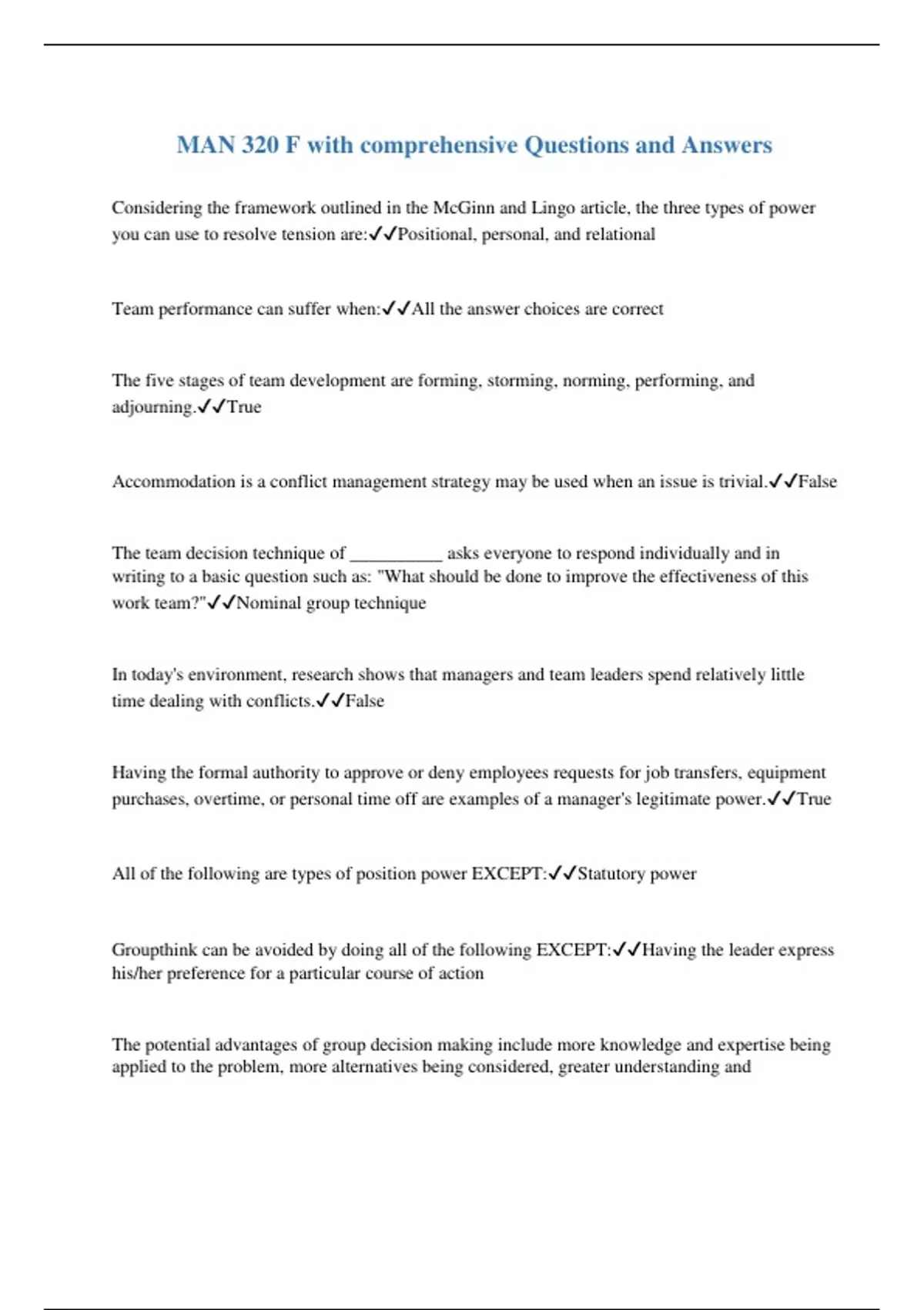 purchases, overtime, or personal time off are examples of a manager's legitimate power.✔️✔️True