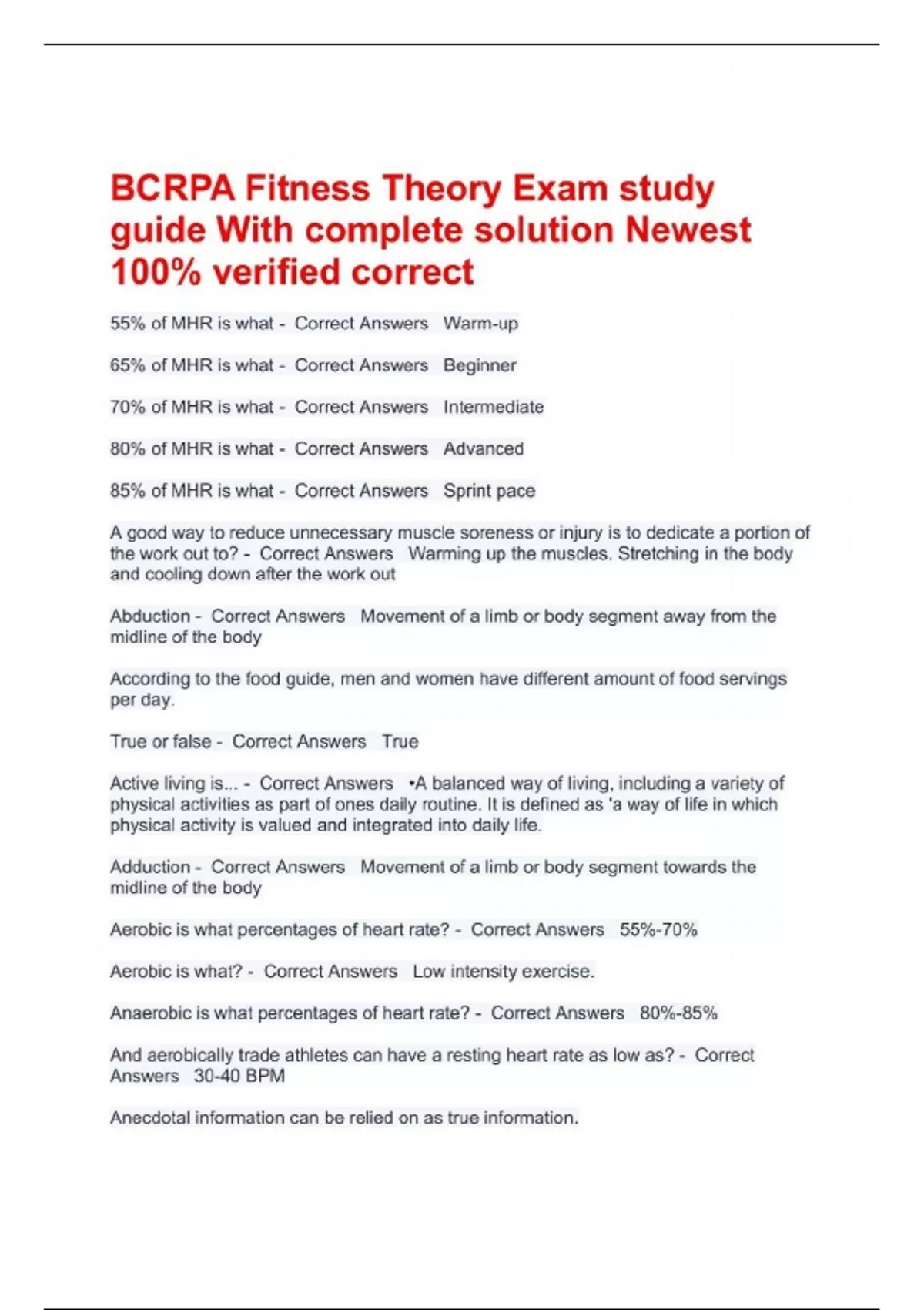 BCRPA Fitness Theory Exam study guide With complete solution Newest 100% verified correct