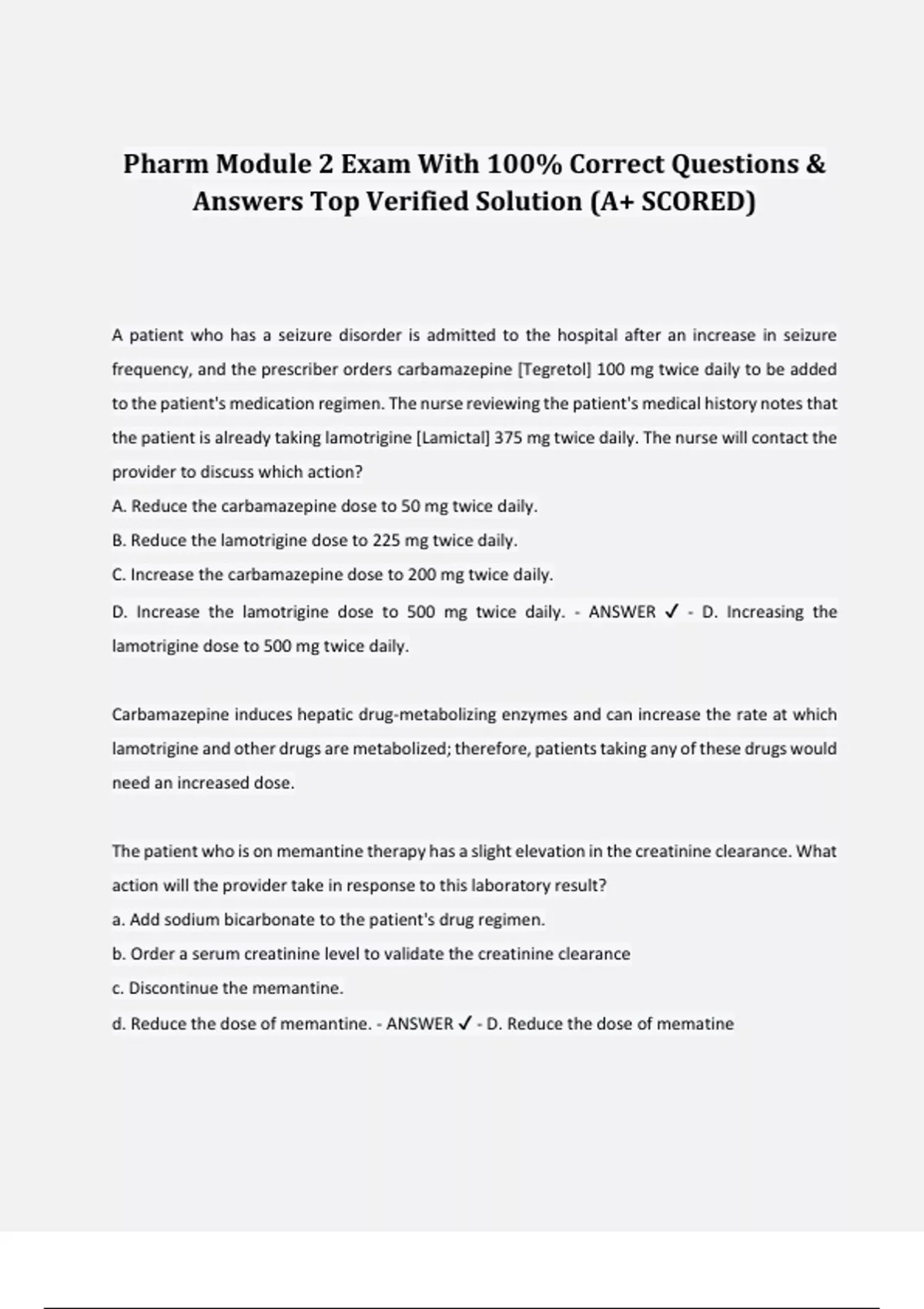 D. Increase the lamotrigine dose to 500 mg twice daily. - ANSWER ✔ - D. Increasing the