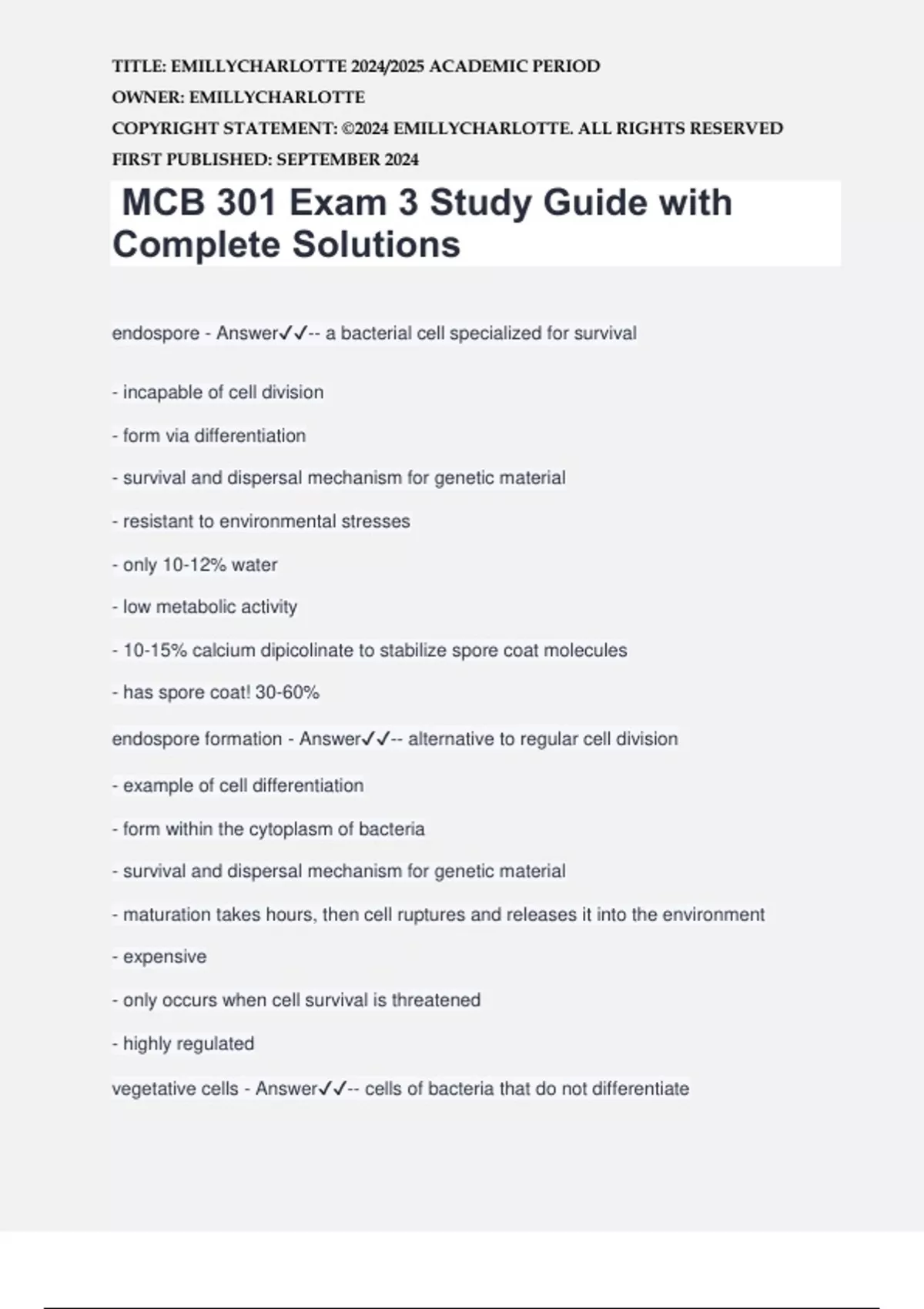 steps of sporulation - Answer✔️✔️-1. DNA is replicated (same as in binary fission);