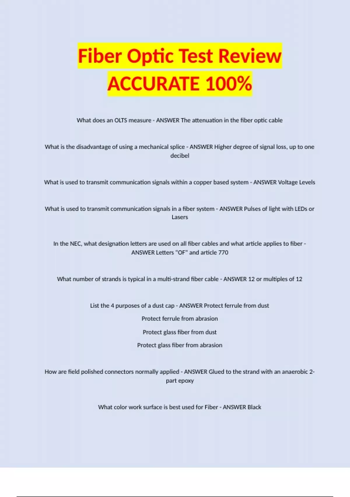 What does an OLTS measure - ANSWER The attenuation in the fiber optic cable
