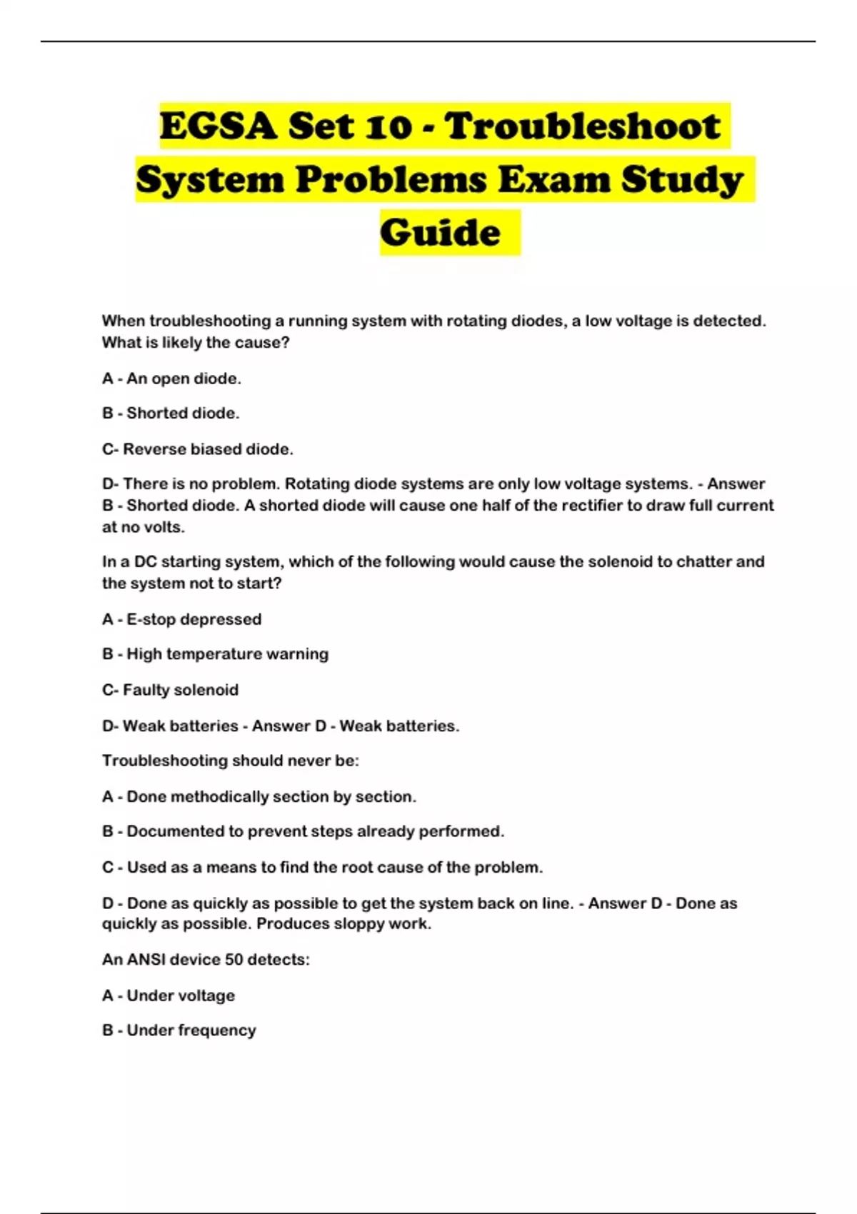 EGSA Set 10 - Troubleshoot