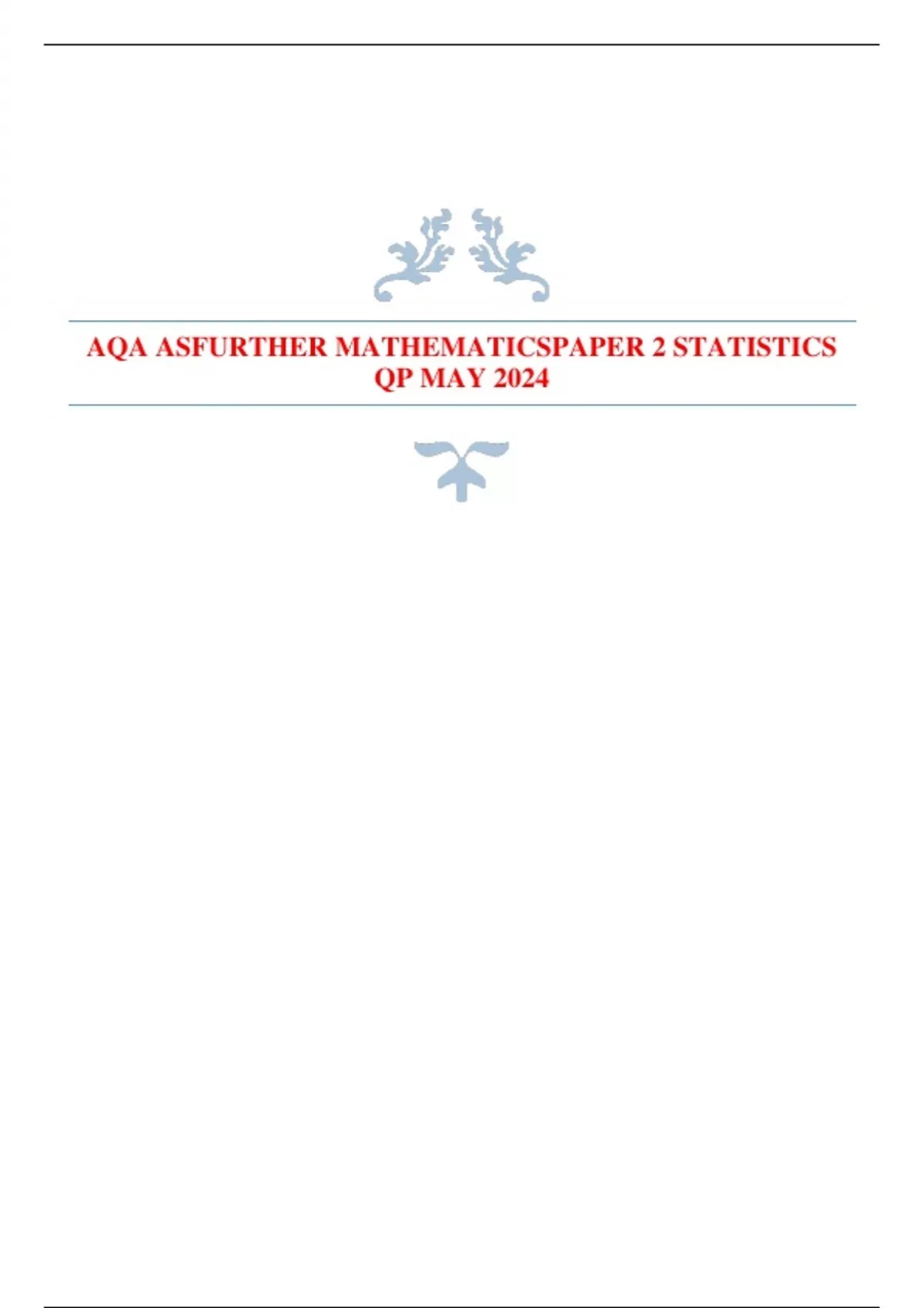 AQA ASFURTHER MATHEMATICSPAPER 2 STATISTICS