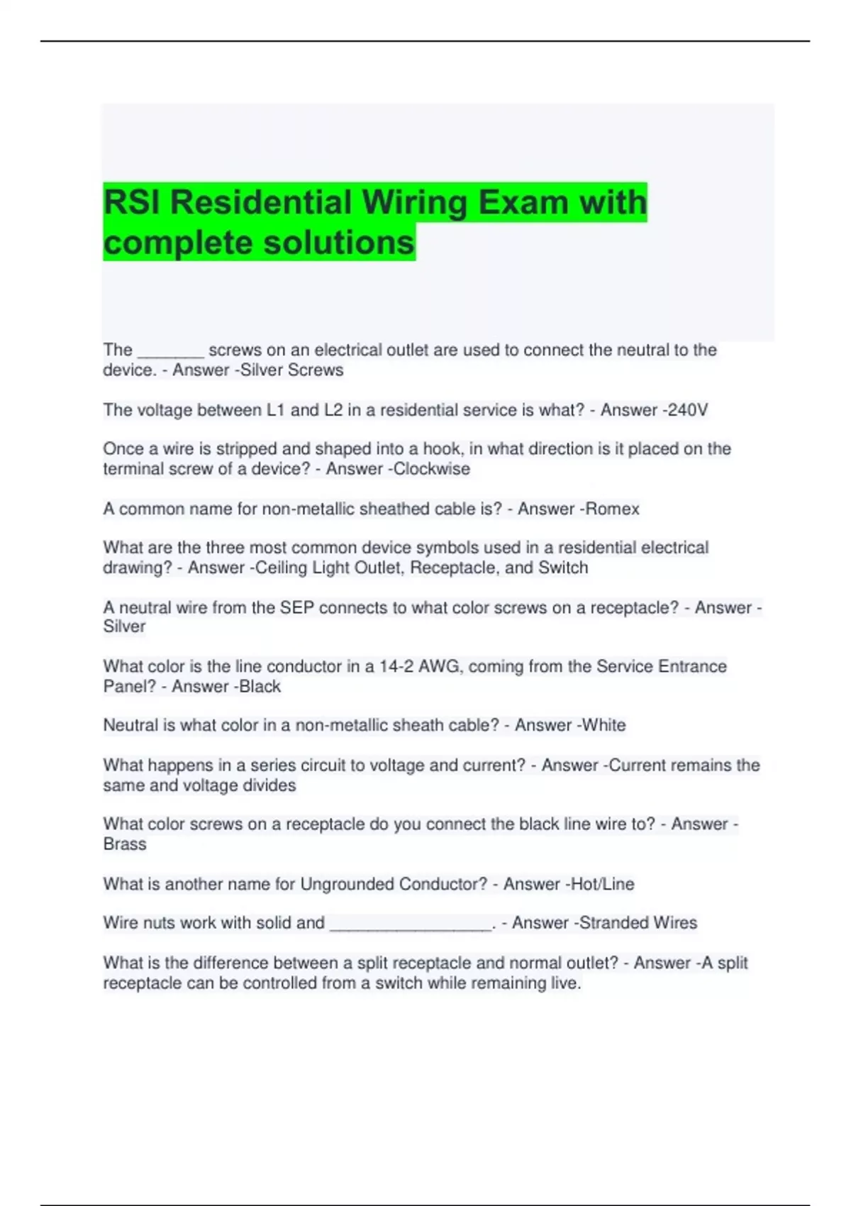 RSI Residential Wiring Exam with