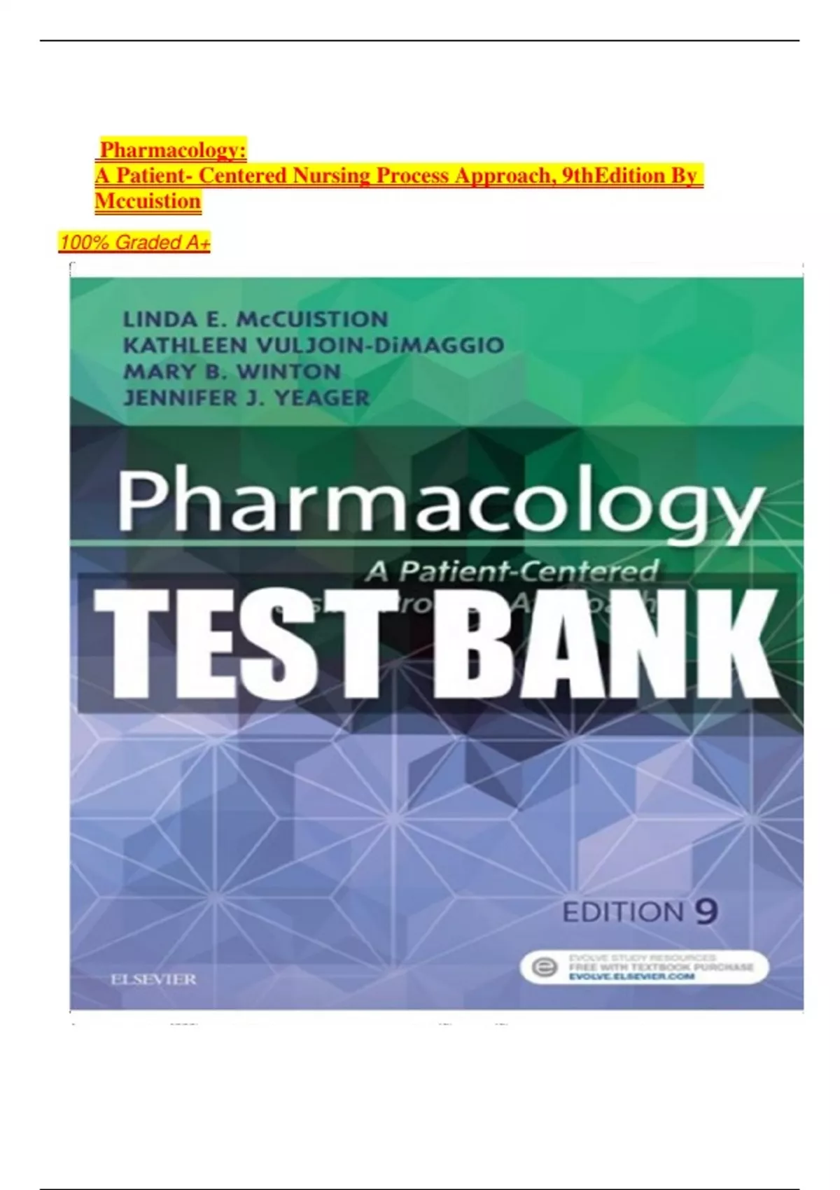 Pharmacology: A Patient- Centered Nursing Process Approach, 9th Edition By Mccuistion 100% Graded A+