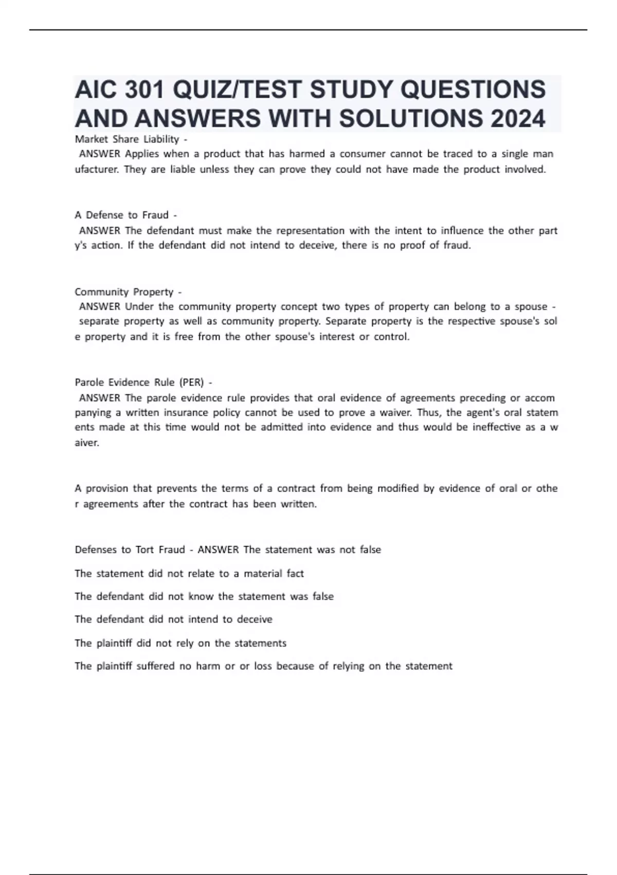 DefensesWtoWTortWFraudW-WANSWERWTheWstatementWwasWnotWfalse