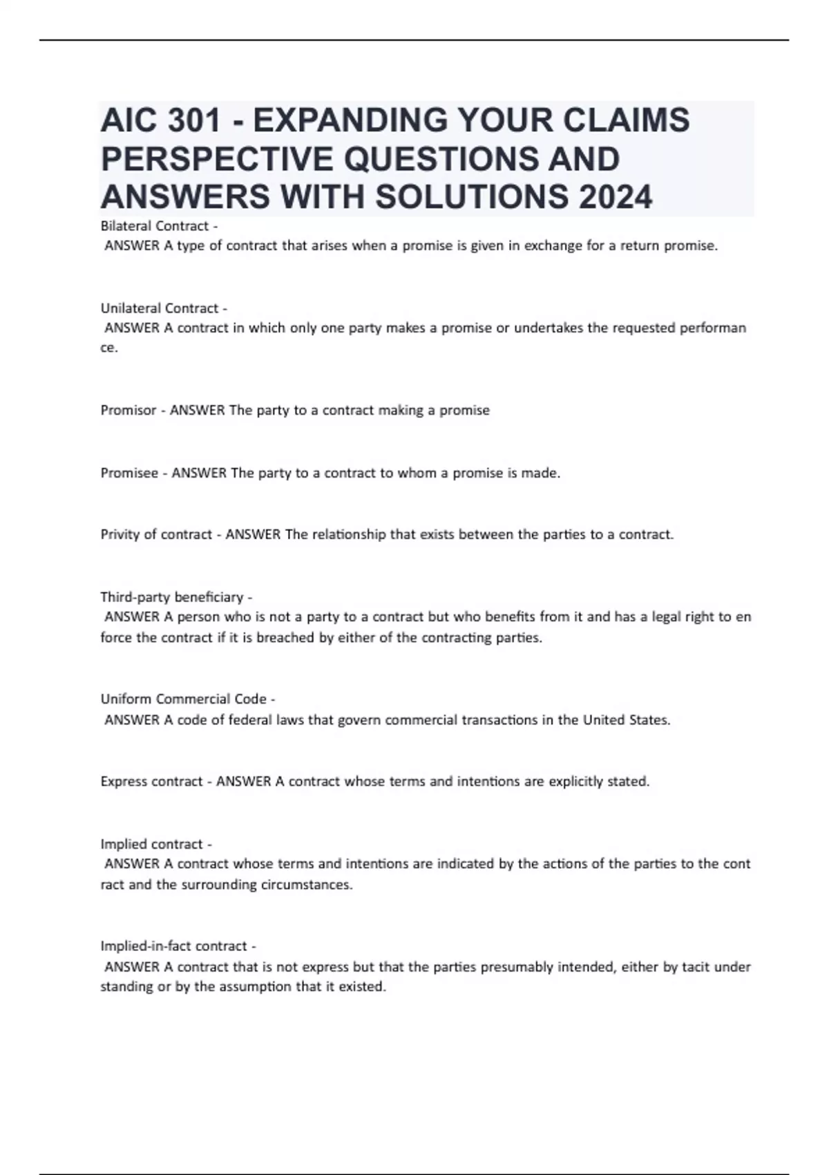 AIC 301 - EXPANDING YOUR CLAIMS PERSPECTIVE QUESTIONS AND ANSWERS WITH SOLUTIONS 2024