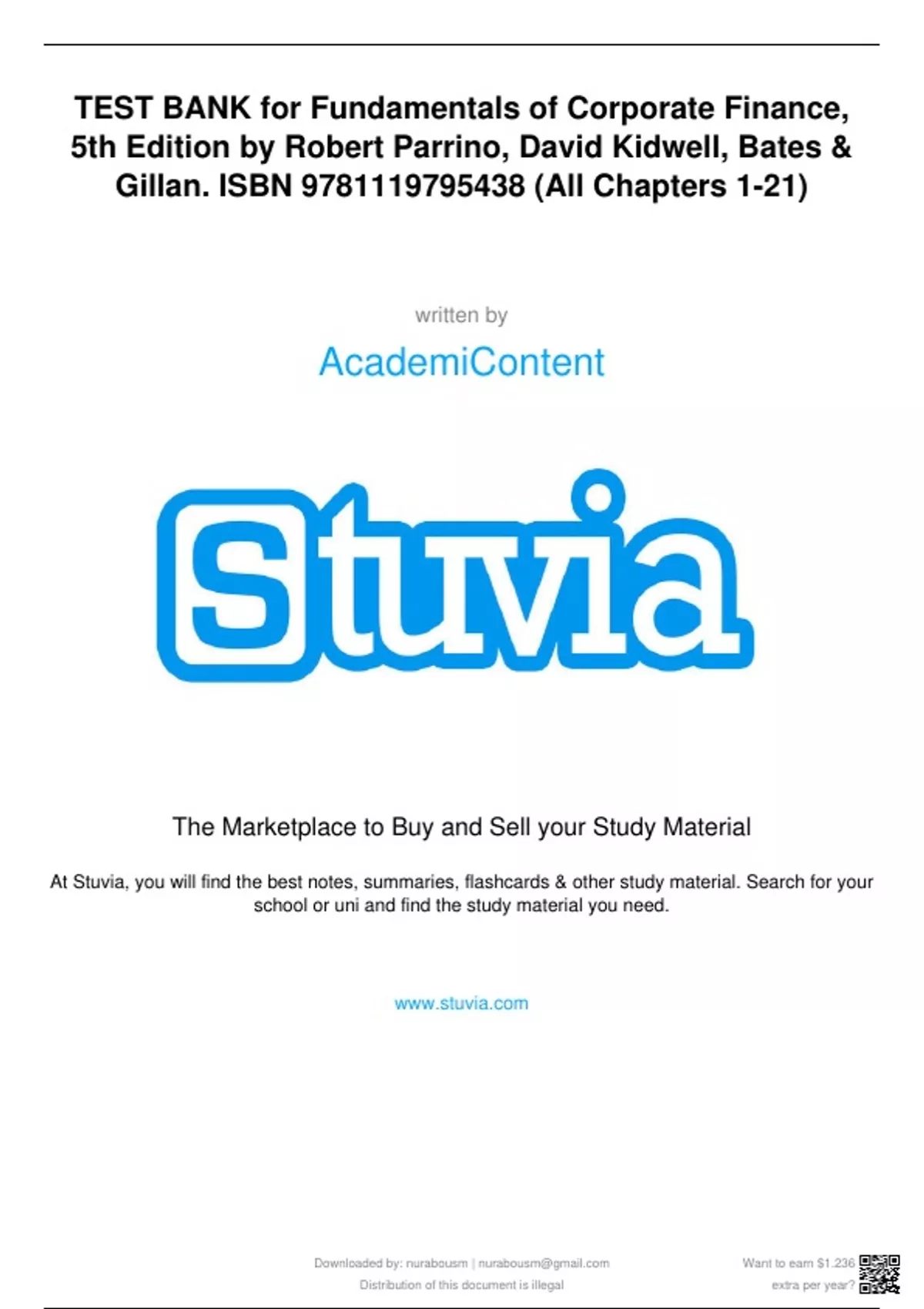 Fundamentals of Corporate Finance”, 5th Edition. Robert Parrino, David S. Kidwell, Thomas Bates, Stuart L. Gillan (ISBN: 9781119795384)