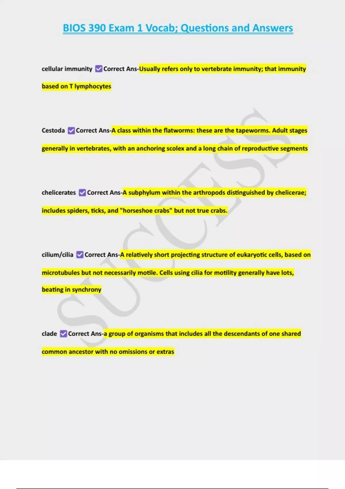 , BIOS 390 Exam 1 Vocab; Questions and Answers