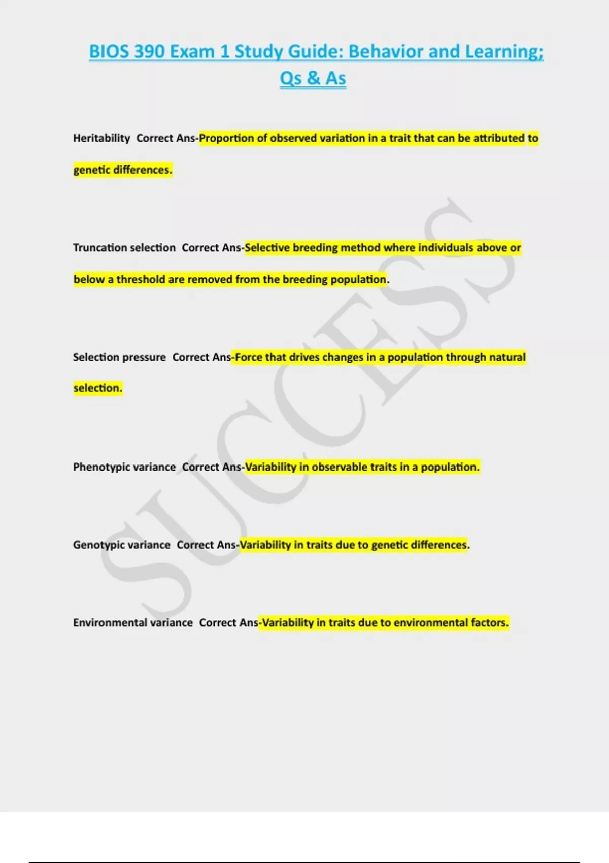 Heritability Correct Ans-Proportion of observed variation in a trait that can be attributed to
