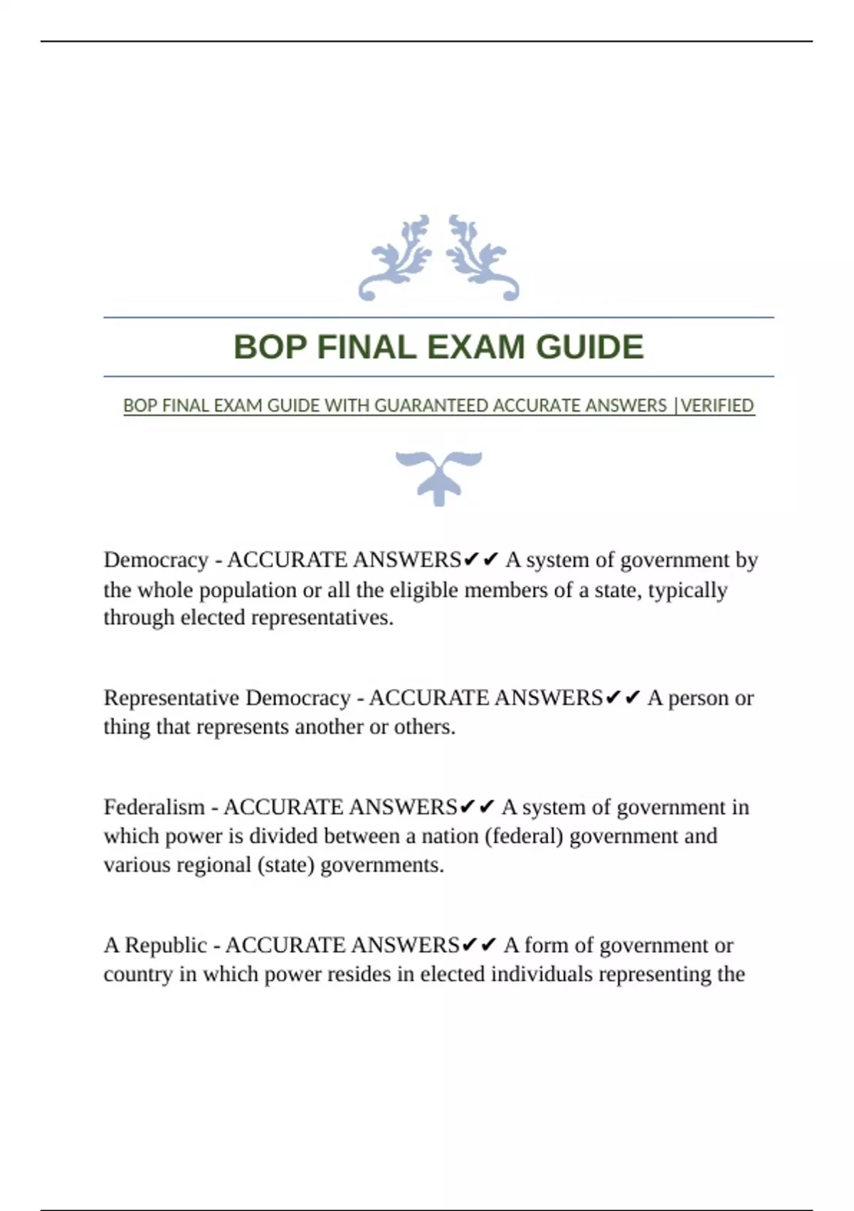 BOP FINAL EXAM GUIDE WITH GUARANTEED ACCURATE ANSWERS |VERIFIED