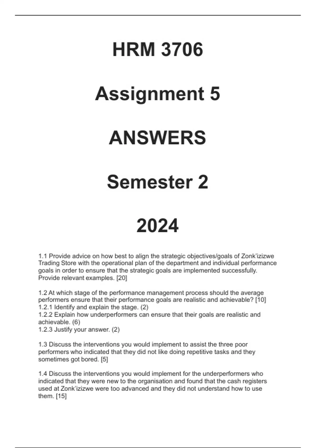 HRM3706 ASSIGNMENT 5 SEMESTER 1 2025 WRITTEN ANSWERS