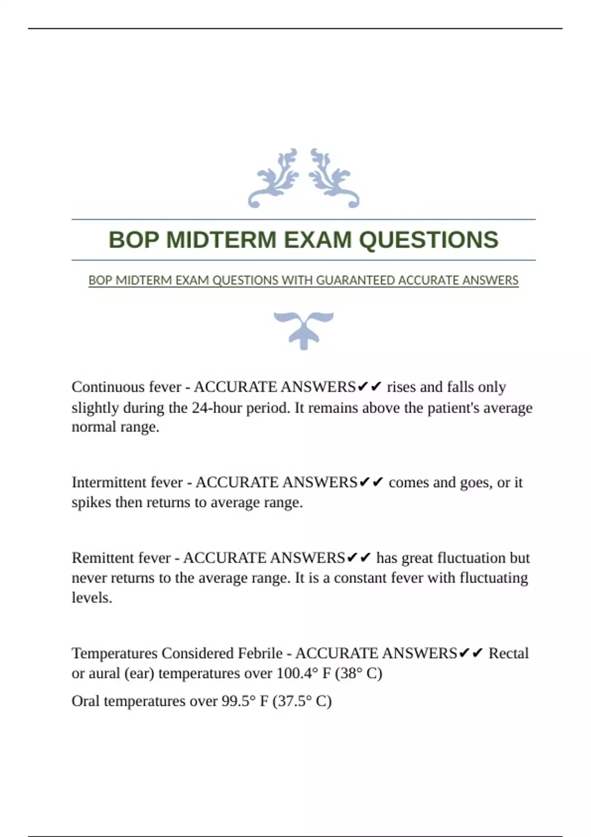 BOP MIDTERM EXAM QUESTIONS WITH GUARANTEED ACCURATE ANSWERS
