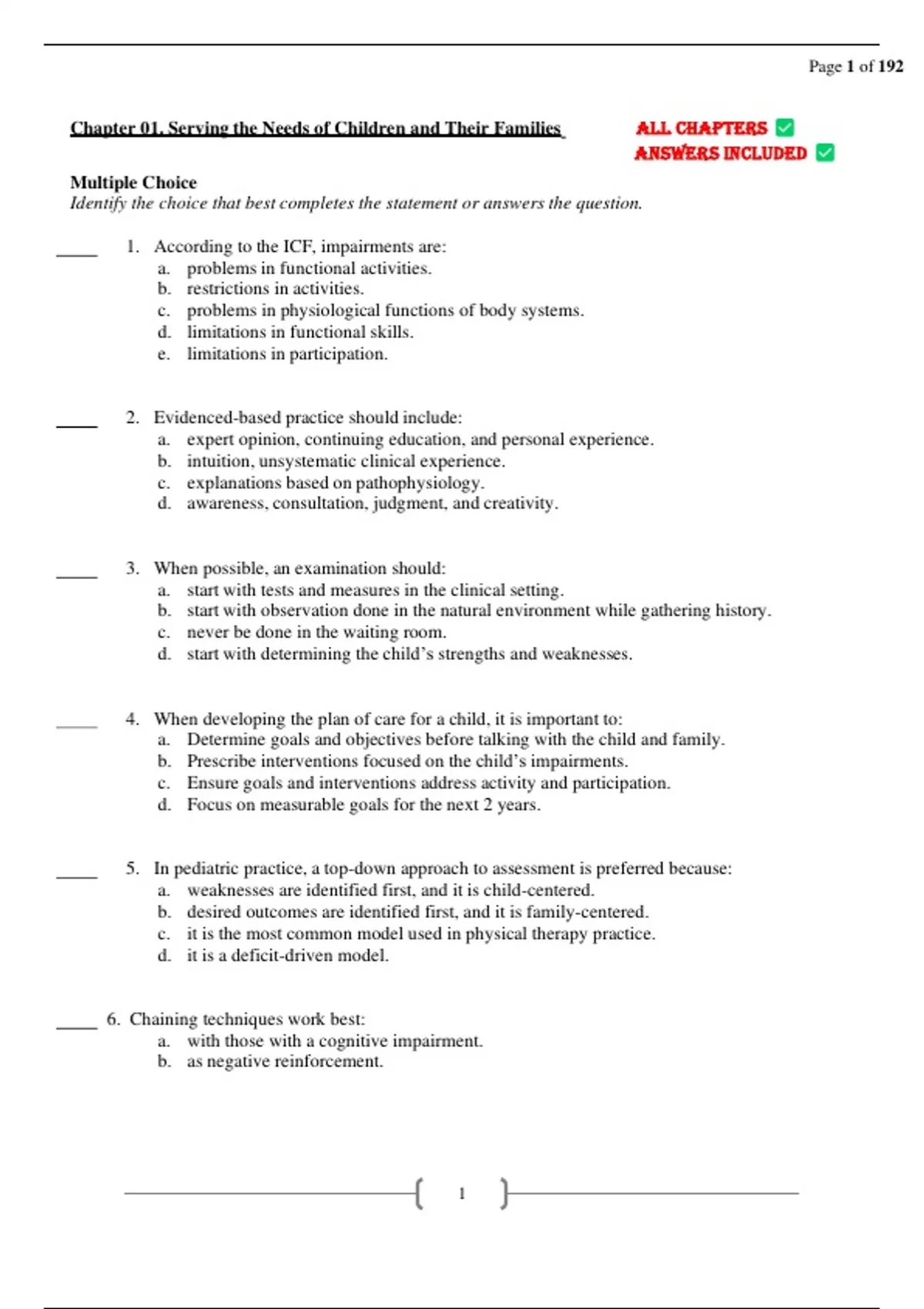 Chapter 01. Serving the Needs of Children and Their Families ALL CHAPTERS