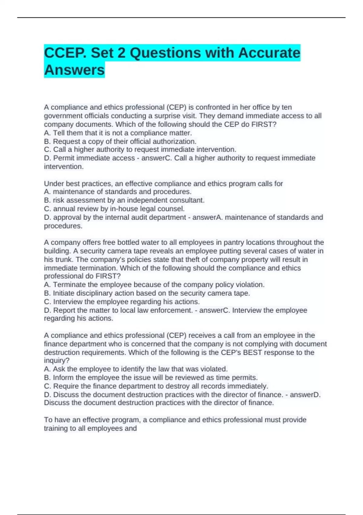 D. periodic compliance training. - answerA. where to seek help and clarification when in