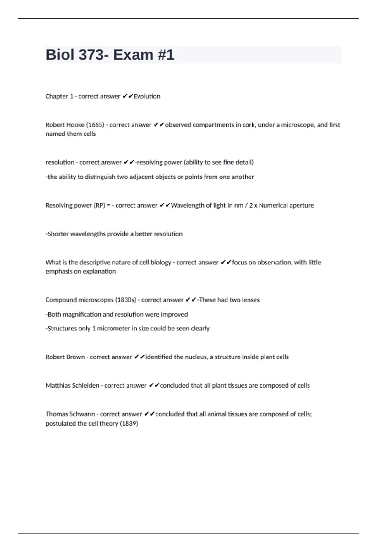 Biol 373- Exam #1 questions well answered to pass