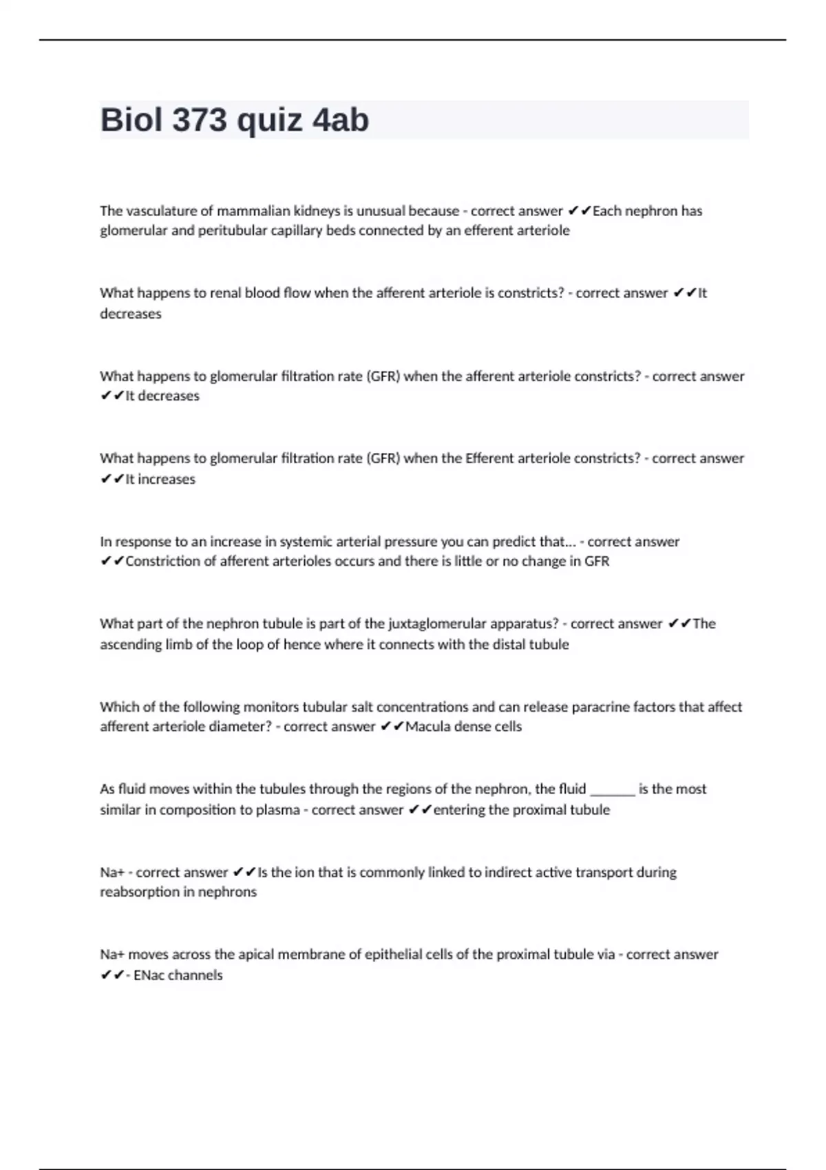 The vasculature of mammalian kidneys is unusual because - correct answer ✔✔Each nephron has